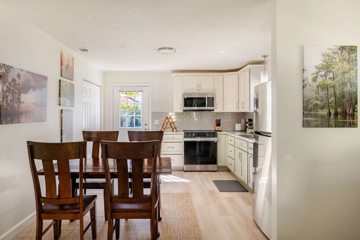 Our one-bedroom cottage sits in the middle of over 25 acres of the beautiful Florida Nature Coast. Even though we are secluded, we have all the comforts of home, from indoor plumbing and hot water to AC and Wi-Fi. Our TV has a Firestick, so bring your streaming accounts and relax night away after you retire from roasting Smores on the outdoor firepit. A fold out sleeper couch takes this from a 2 person cottage to 4 in just minutes. Parking is not an issue, even if you have a trailer.