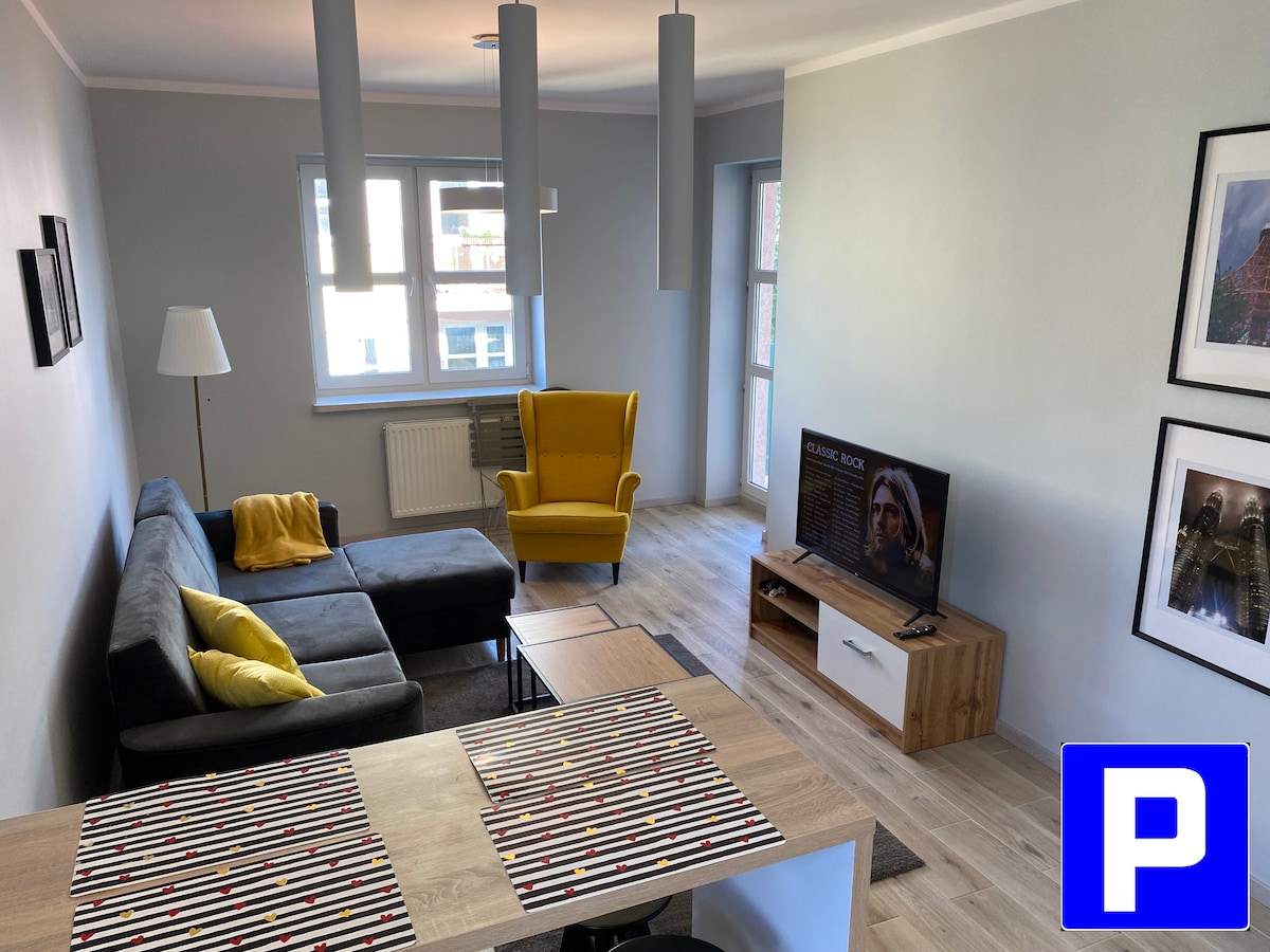 Appartement de luxe récemment rénové dans le centre de Wrocław. Situé au dernier étage d'un immeuble avec ascenseur. Situé à seulement quelques minutes à pied (400 mètres) de la place du marché de Wrocław. Un endroit idéal pour les familles et les personnes en quête de paix et de confort dans un intérieur insolite. Balcon avec vue sur le panorama de la ville. Internet par fibre optique gratuit, télévision connectée 4K 55", climatisation. Place de parking gratuite dans un garage souterrain surveillé.
