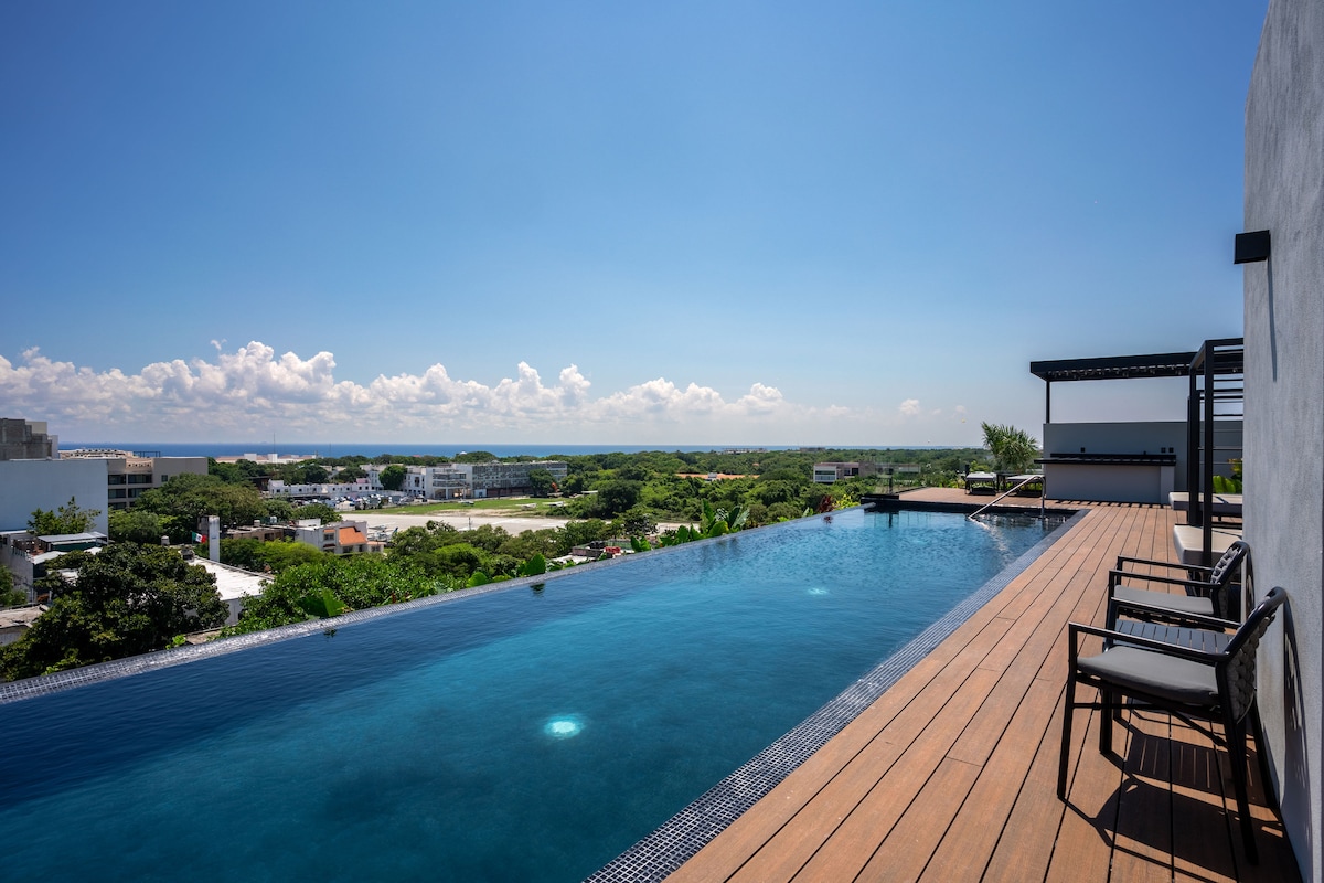 Cet appartement de luxe de 2 chambres et 2,5 salles de bains est situé en plein cœur de Playa del Carmen et dispose d'un lit King Size et de 3 lits simples. Il dispose d'une belle terrasse avec son jacuzzi pour que vous puissiez regarder le soleil se lever sur les eaux des Caraïbes. Une symphonie de couleurs ! Ou passez un peu de temps à vous détendre dans la piscine / baignoire sur notre spectaculaire toit-terrasse.