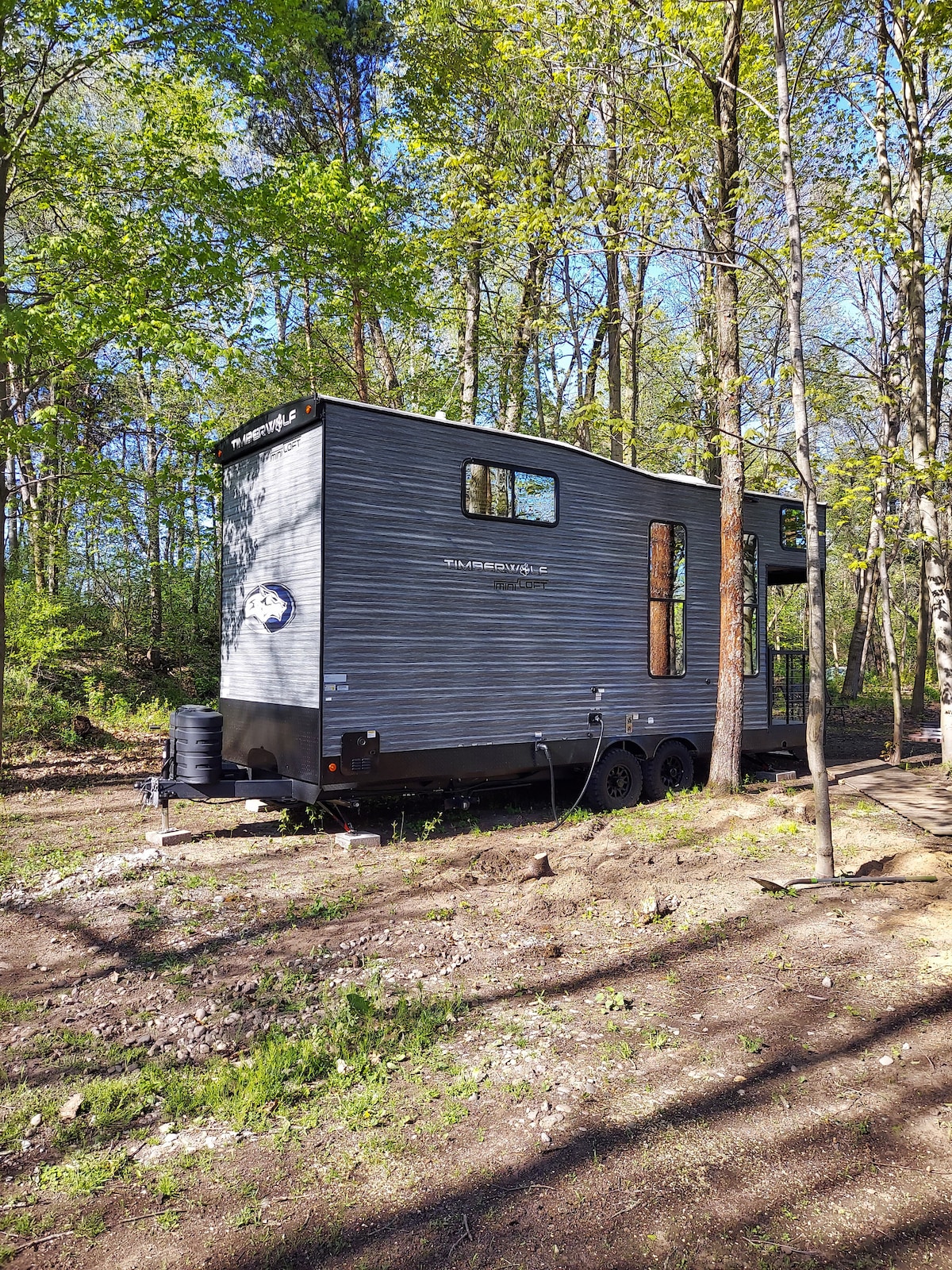 C'est notre maison personnelle dans laquelle nous ne vivons pas du printemps à l'automne. C'est un quartier calme dans les bois sur un petit ruisseau. Parfait pour les feux de camp ou simplement un endroit pour se reposer. Situé à environ un demi-mille de la route, le seul bruit que vous entendrez la nuit sera peut-être les loups qui hurlent dans le sanctuaire des loups à proximité. Nous sommes à seulement 15 minutes en voiture de n'importe où à Muskegon. Nous pouvons organiser une excursion privée en bateau pour un maximum de 8 personnes sur le lac Muskegon et le lac Michigan pour 100 $/2 heures. Remarque : il n'y a pas de cuisine équipée.