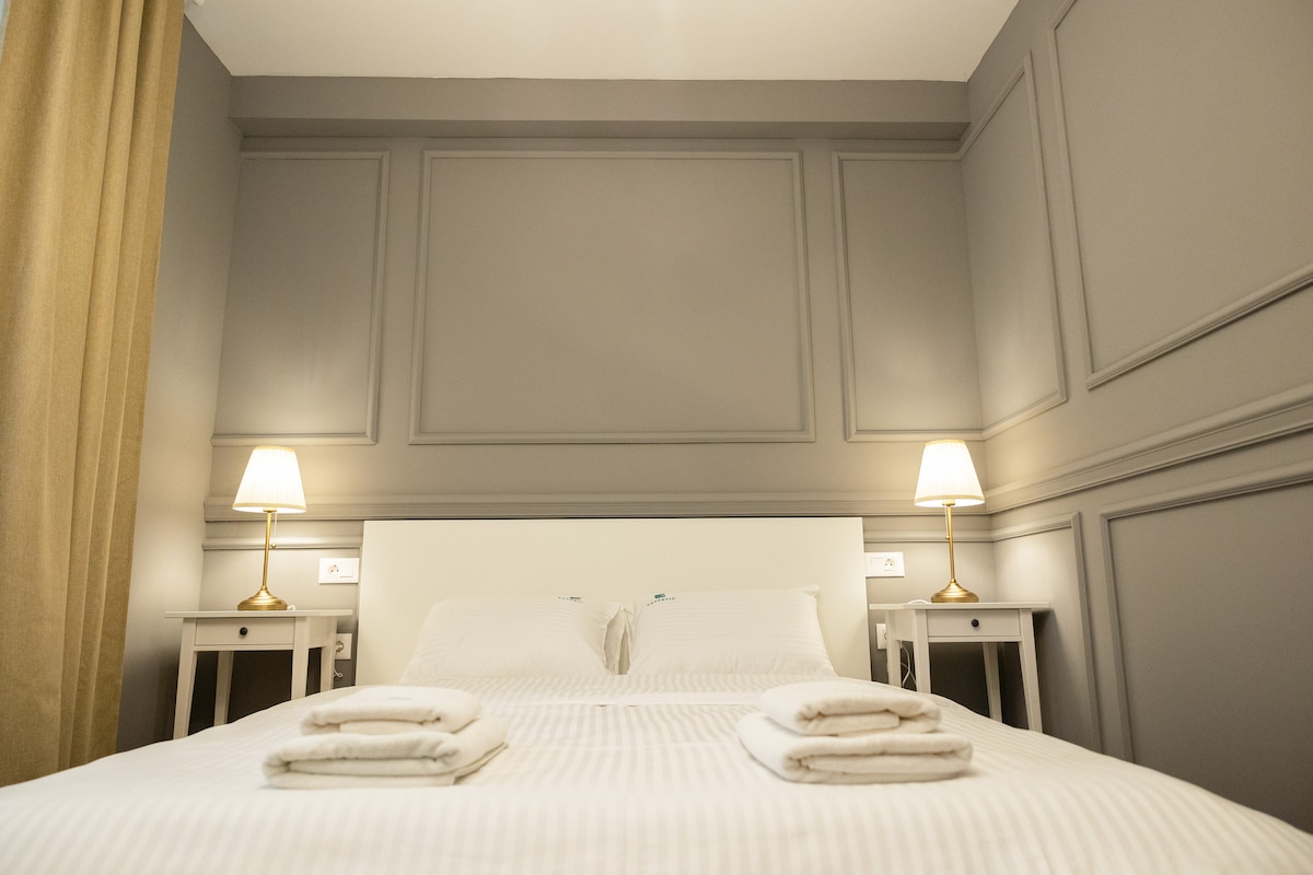 Notre suite moderne et spacieuse offre l'espace idéal pour votre séjour. Il se compose d'un salon avec un canapé d'angle confortable, parfait pour se détendre, et d'une chambre avec un lit double et un matelas anatomique pour un sommeil réparateur. En outre, une cuisine équipée, une connexion wifi haut débit et un parking gratuit sous vidéosurveillance sont à votre entière disposition. Il est situé dans une rue calme à seulement 5 minutes du centre-ville. Choix idéal pour les voyageurs d'affaires et les touristes !