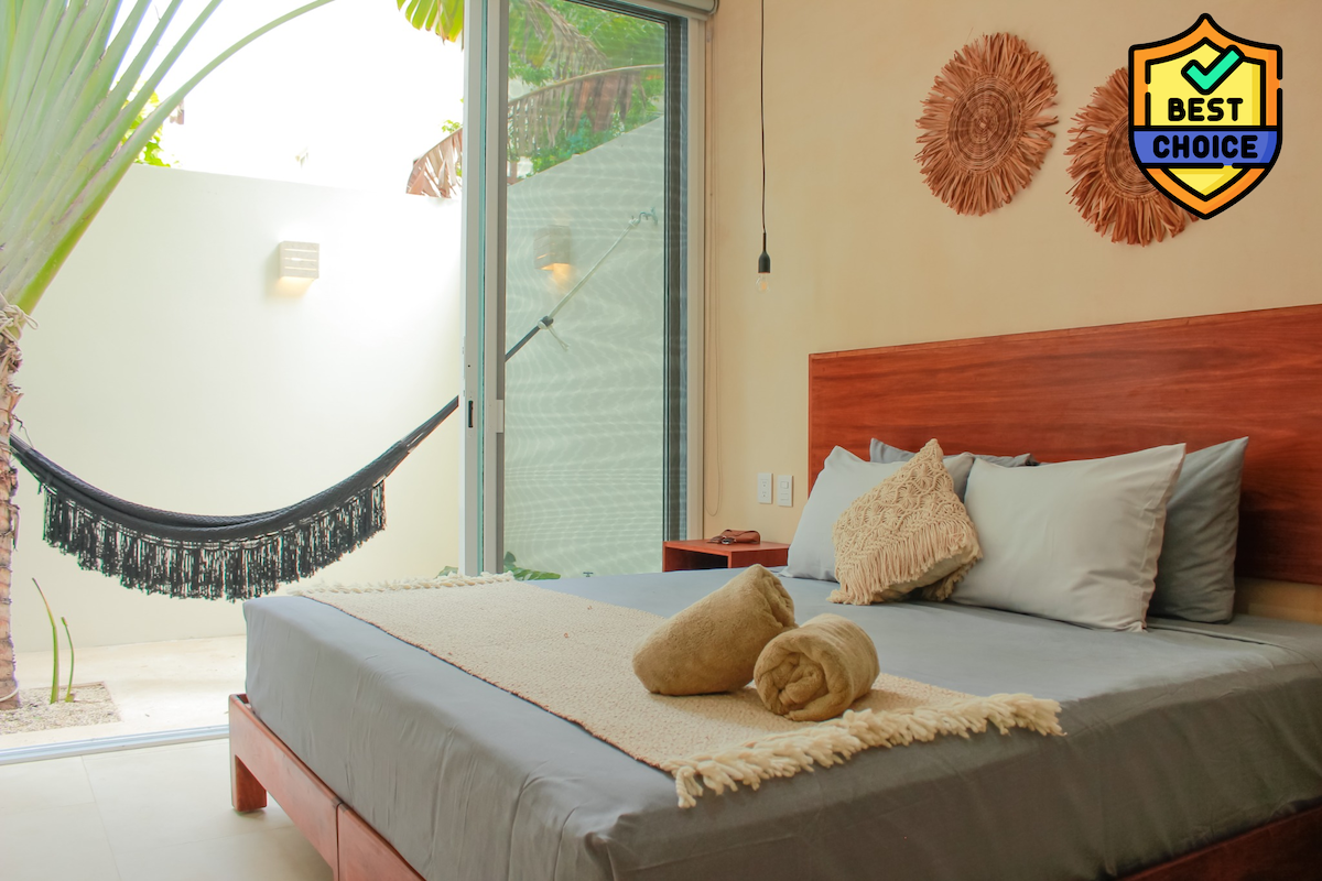 Welcome to our exquisite studio, a sanctuary designed to redefine your getaway experience. Discover a captivating haven surrounded by nature that seamlessly blends homely warmth with modern sophistication. Nestled within the vibrant pulse of Tulum's "La Veleta" neighborhood. At our place a haven of comfort and refinement awaits. It's not just accommodation; it's an experience that will linger in your heart.