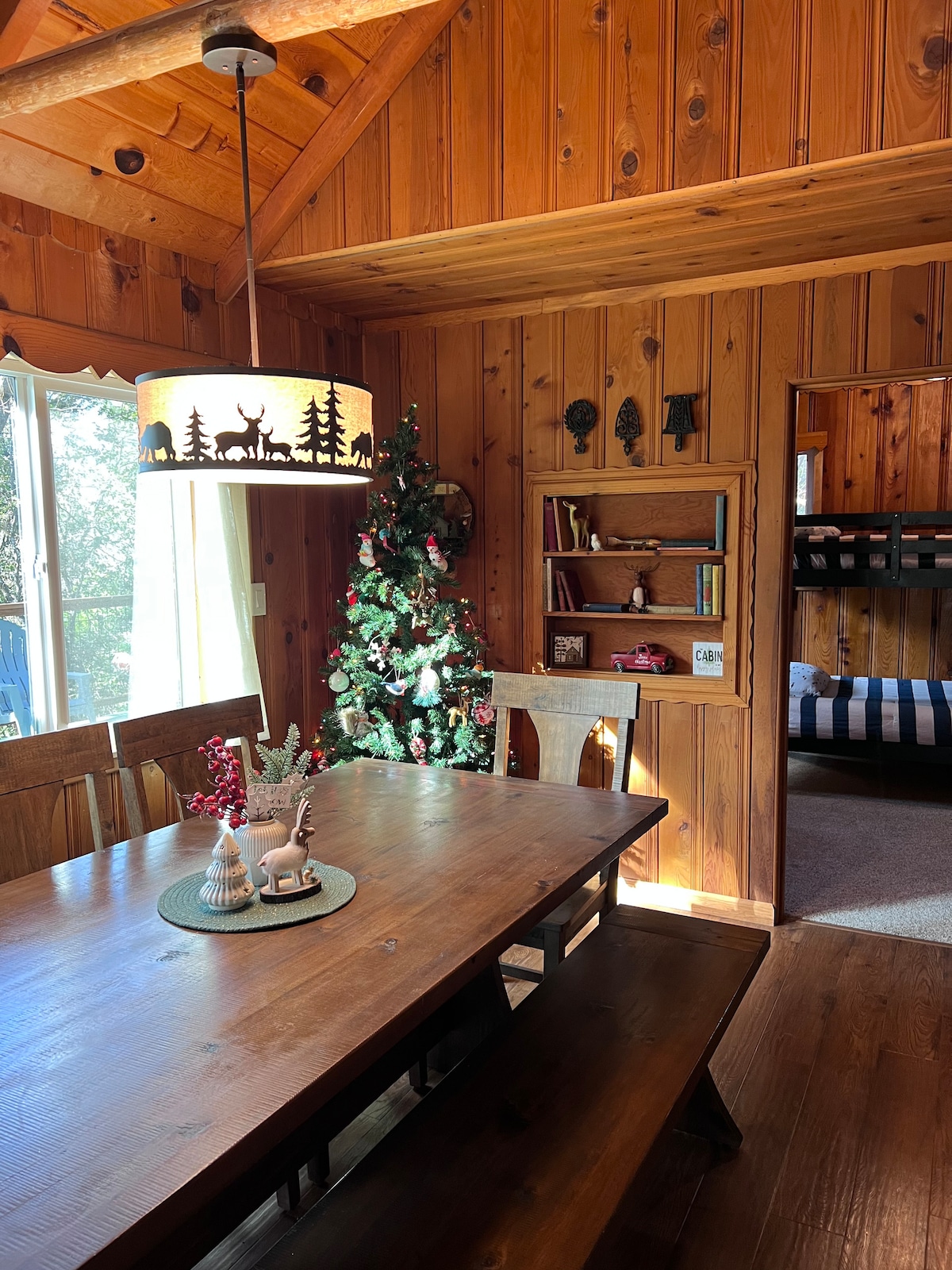 Great Location and LAKE MEMBER. 0.3 mile hilly walk to restaurant, bars, and recreation. And use of Twain Harte Lake Membership (seasonally). This 3 bedroom 1.5 bath updated cabin gives the cabin feel you're looking for without sacrificing amenities. This is a family cabin with family amenities such as toys and books and play equipment in the fenced yard.