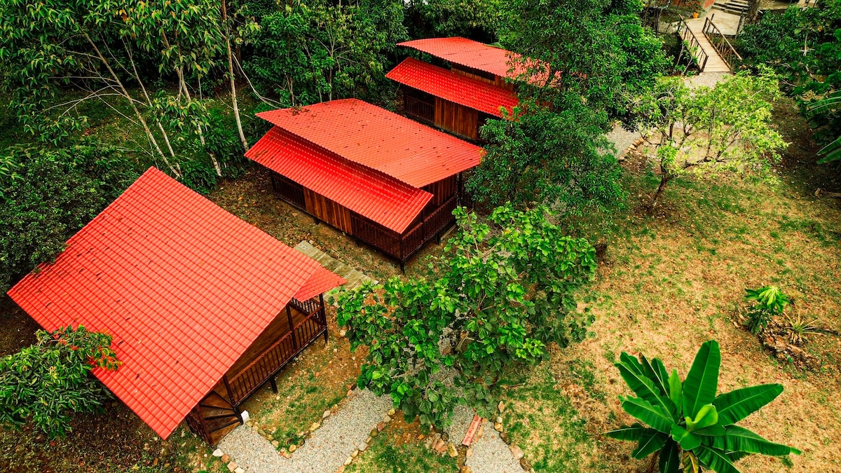 "🌳Escápate a nuestra acogedora casa en la selva, 🌎 un refugio rodeado de vegetación y sonidos naturales. 🦜🦋 Disfruta de la paz y el aire puro, 🌬️🍃con senderos cercanos para explorar y una vista perfecta para quienes buscan desconectar y recargar energías.✅" Lo que la hace única es su ubicación privilegiada para el avistamiento de aves. 🪶🦜 Podrás disfrutar de coloridas aves endémicas y migratorias que habitan en la selva.🌳🦋 Despierta con el canto de los pájaros y relájate 🦋🌿🍃