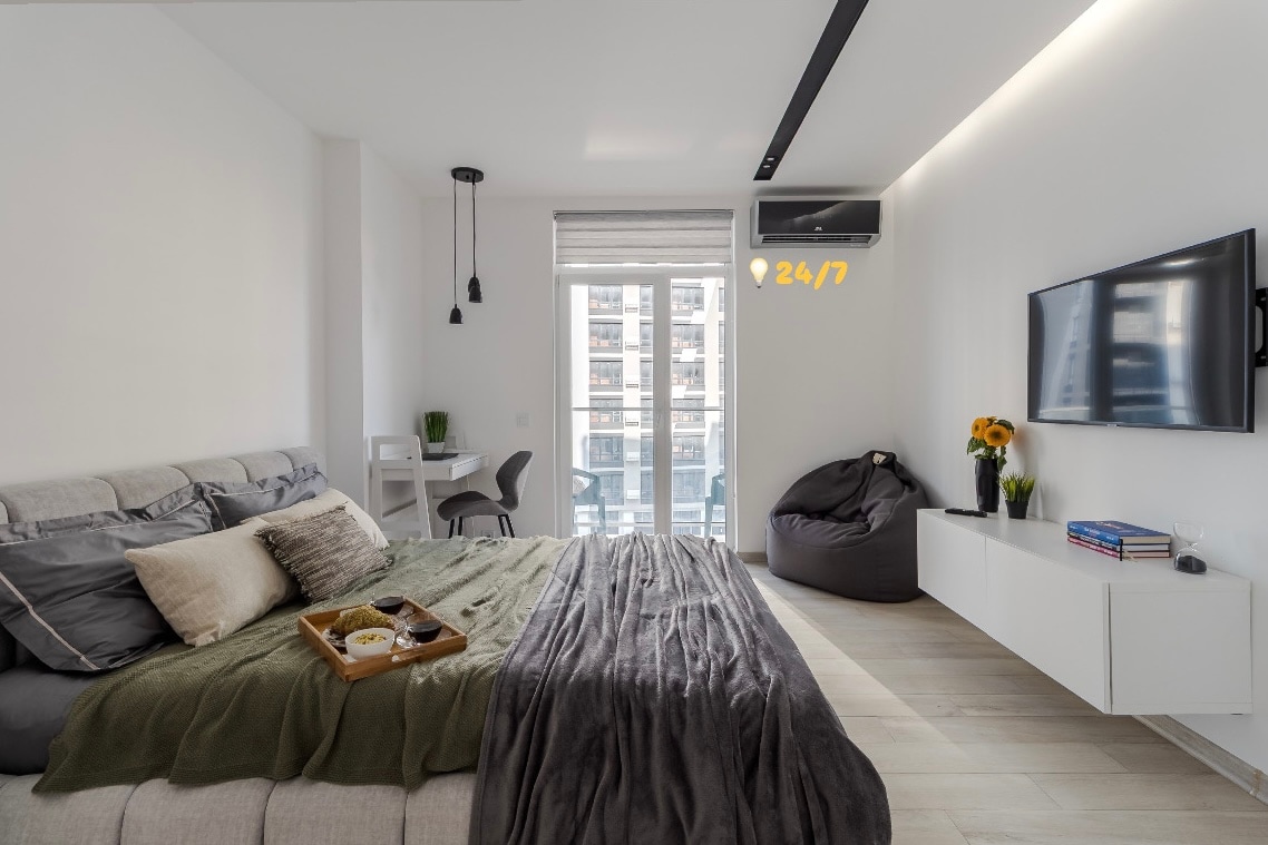 Studio moderne et neuf (40 m2) dans le complexe résidentiel Avalon sur l'avenue V. Chornovil. Équipé de tout le nécessaire pour passer un séjour agréable : chauffage indépendant, sol chauffé, optique Internet, Netflix, climatisation, lave-vaisselle, cafetière, eau 24h/24. Une cuisine complète avec des appareils intégrés où vous pouvez préparer un repas. Lit double 160/200 avec matelas orthopédique. Depuis le balcon, superbe vue sur la ville et coucher de soleil le soir. Arrivée et départ autonomes à l'aide de la clé dans la boîte à clé sécurisée.
