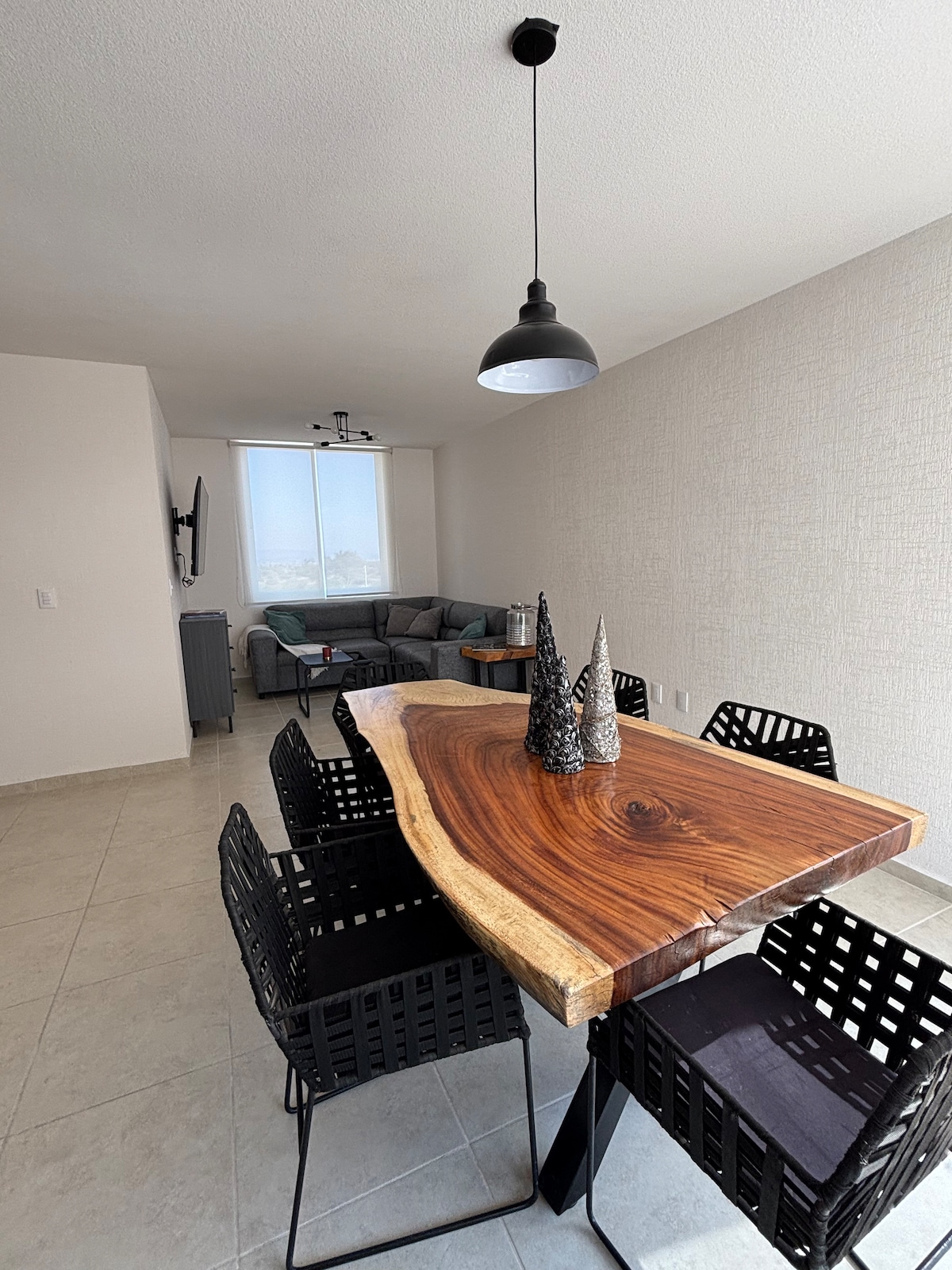 Appartement confortable et élégant avec un style joyeux. Il dispose de toutes les commodités d'un appartement de luxe tel qu'une piscine, un jardin sur le toit, une salle de jeux pour enfants, un centre d'affaires, un parking privé, une vigilance 24h/24 et une salle de sport. Profitez du nouveau quartier chic de Querétaro, avec la meilleure vue de la réserve naturelle « El Tángano » et de la ville. Très proche de la gare routière, de l'autoroute vers Mexico et de la sortie vers l'aéroport international. Important de confirmer le numéro des invités.