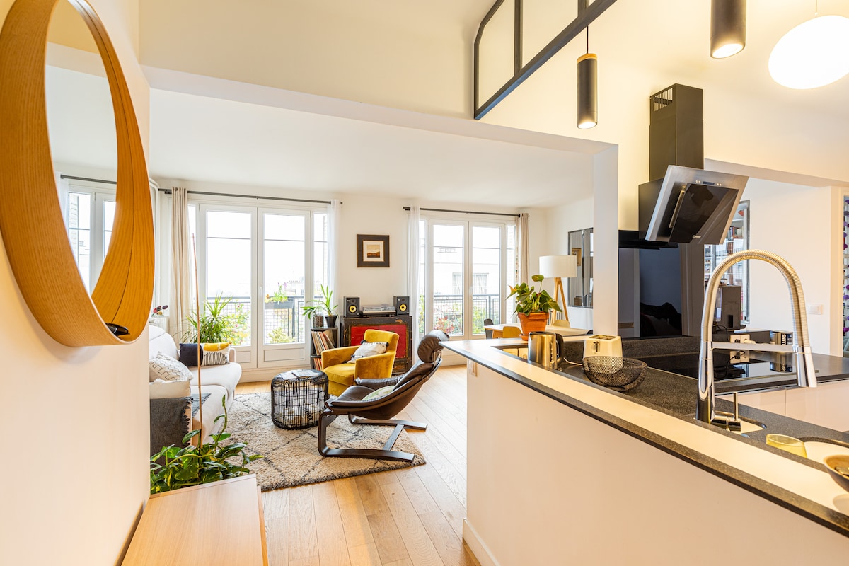 Profitez de notre élégant appartement parisien. Nous sommes également heureux de partager nos 15 années d'expériences parisiennes ainsi que nos conseils et habitudes pour profiter de la vie du quartier et de Paris ! L'appartement est entièrement meublé et propose une cuisine ouverte sur le salon, une chambre disposant d'un grand lit double de qualité (160×200) et une salle d’eau. L'appartement est situé au 4ème étage et dernier étage (sans ascenseur : déconseillé pour les bagages XXL )!