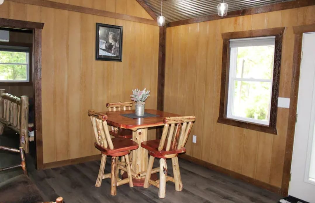 La cabane ancienne Rebecca Behm est située sur une route calme, c'est l'endroit idéal pour se détendre et s'évader. Les rondins de bois du chalet sont anciens, mais ne vous inquiétez pas, vous profiterez de toutes les commodités modernes. La cuisine est entièrement approvisionnée. Le séjour dispose d'une cheminée à bois (nous fournissons tout le bois de chauffage). Il y a 3 chambres, chacune avec des lits Queen Size. Les 2 salles de bains disposent de douches carrelées personnalisées. L'une des caractéristiques préférées de cette cabane sont les grands porches et la cheminée extérieure.