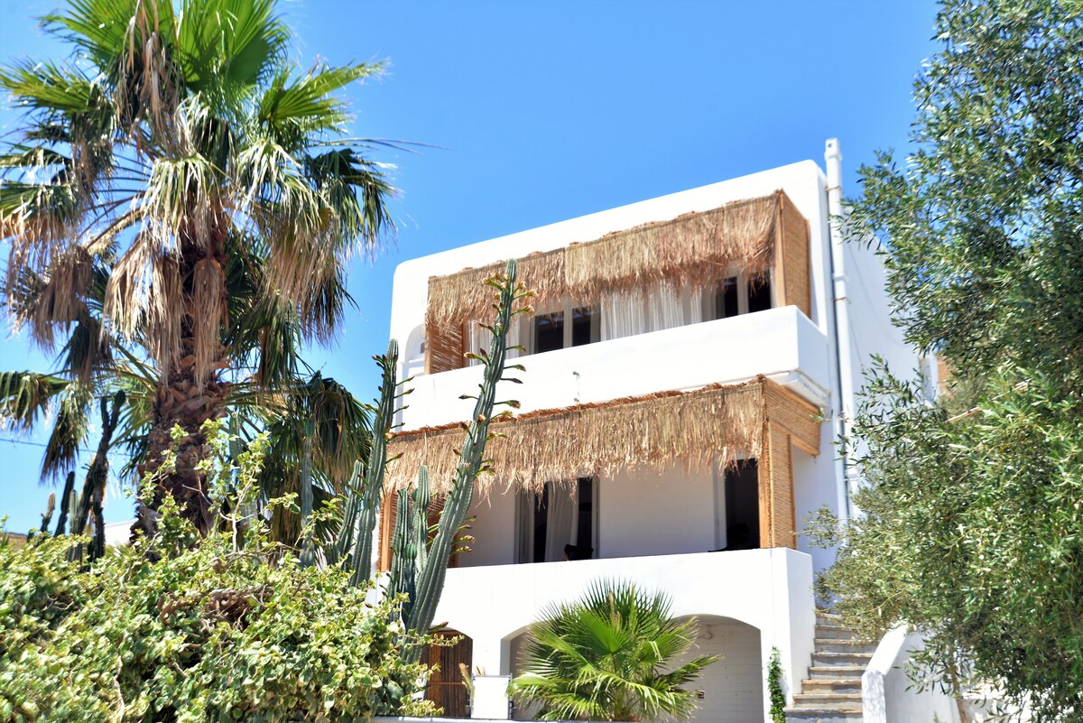 Avec le design cycladique et l'approche bohème, avec des couleurs chaudes et des meubles en bois faits à la main, laissez-vous tenter par une maison de luxe mais élégante pour vos vacances. La maison offre une vue imprenable sur la mer, et depuis le balcon, vous pourrez profiter de votre dîner sous les étoiles. Devant la maison, il y a une plage cachée. La maison intègre des caractéristiques traditionnelles et cycladiques qui se mélangent somptueusement ensemble, vous offrant un lieu de sérénité répondant à vos attentes de vacances souhaitées. Au plaisir de vous accueillir !