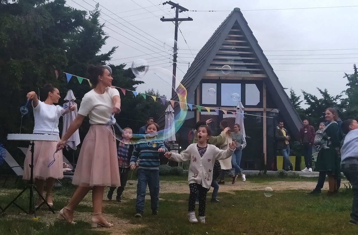 Un mini chalet avec une vue magnifique sur le village et l'étang, où vous pourrez profiter de la cheminée en hiver. À 5 minutes du centre du village d'Ulamış. Chalet idéalement situé à 20 minutes de la côte, clubs de plage tels que Seferihisar, Sığacık, Akarca (endroits tels que la plage côtière, la plage de Mali, la plage de Battery). Vous pourrez déguster le célèbre pain de cheval Karakılçık et le fromage armola du village, cuit au four en pierre, et visiter notre marché de village.