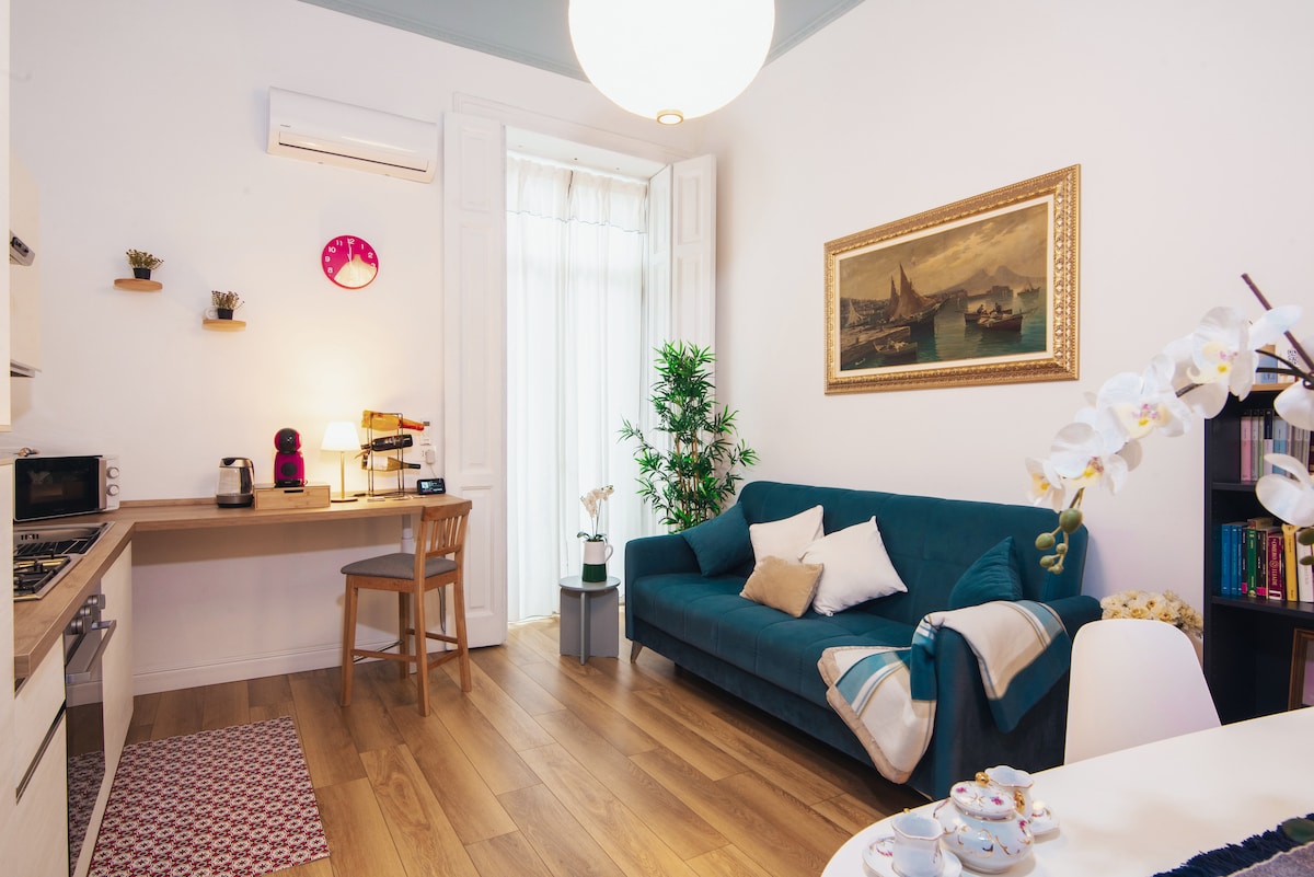 Luxury apartment: a combination of classic elegance and modernity, just renovated with JACUZZI and PRIVATE ROOFTOP of 90mq where you can admire the volcano Vesuvius. Located in a historical building on the 3rd floor without elevator in the heart of the old town, you can reach everything by walking. WiFi, PrimeVideo, Nespresso and luggage storage for FREE Points of interest • 2 min Duomo • 4 min Underground Naples • 6 min Metro L1 & L2 • 5 min Train Station • 10 min Harbour