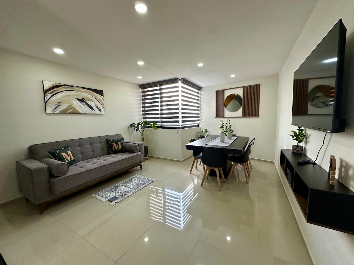 **** À seulement 5 minutes de la FNSM, plongez dans le luxe de notre appartement situé dans le charmant quartier historique d'Aguascalientes, en plein centre. Profitez d'équipements tels qu'une place de parking, une terrasse avec bar et un espace vert. Parfait pour le travail à distance et les séjours prolongés. De plus, pour votre confort, nous proposons des options de facturation. Réservez maintenant et découvrez le luxe dans le vieux quartier d'Aguascalientes !
