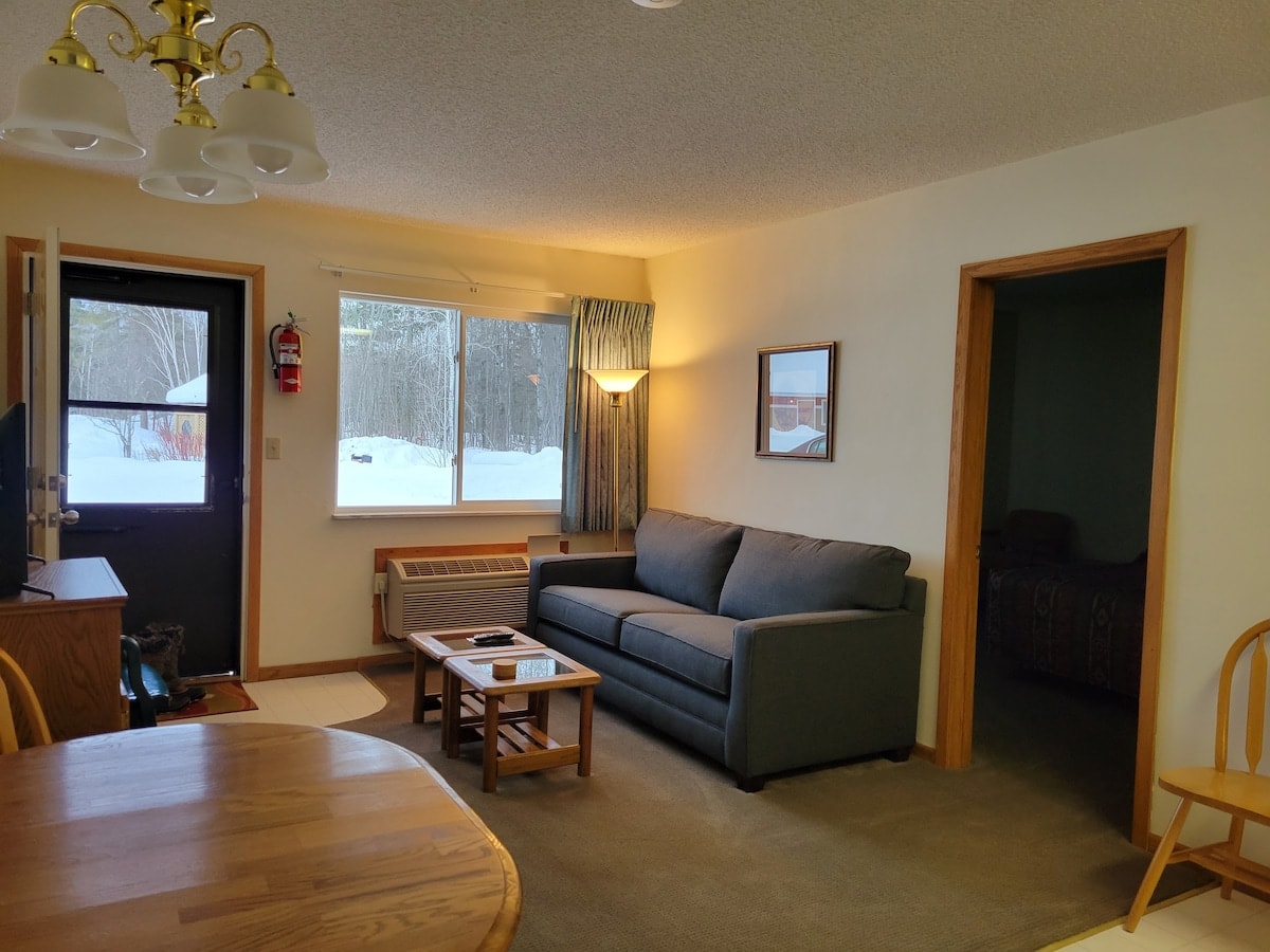 Notre appartement d'une chambre à l'unité 237 est le point de départ idéal pour toutes vos aventures à Hill City, y compris des kilomètres de VTT, des pistes de vélo/randonnée/ski de fond et de motoneige, un magnifique terrain de golf de 9 trous, des locations de vélos, un accès à la piscine et à Hill Lake ! Ce logement dispose d'une salle de bain dans l'espace de vie principal, de deux lits queen size dans la chambre et d'un lit gigogne dans le canapé du salon. Nous offrons la télévision par câble, le Wi-Fi et la climatisation pour rendre votre escapade aussi confortable que la maison !