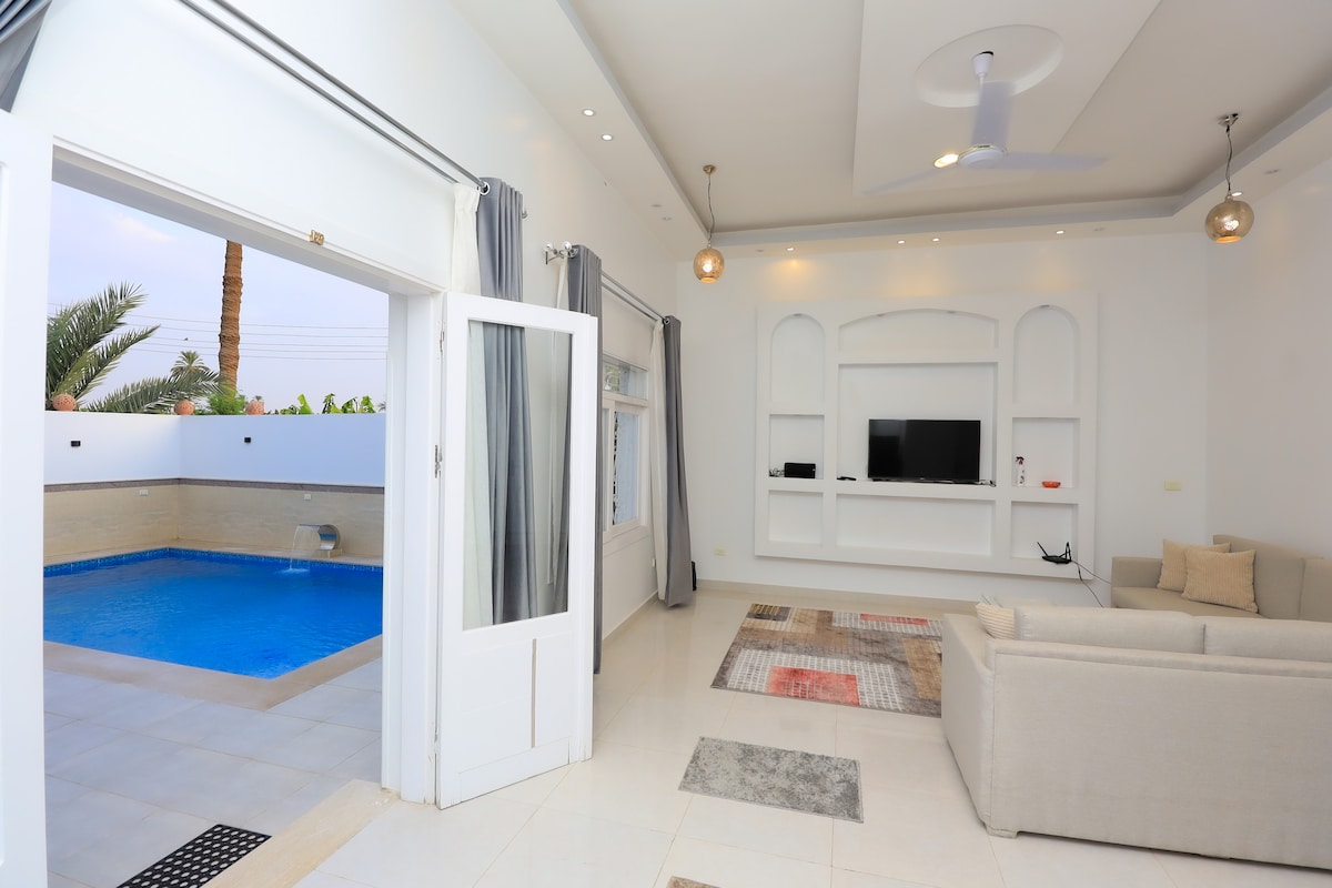 Welcome to Sunny Palm Vella, a private villa in Luxor with your own pool, sunny terrace, spacious rooms, and a fully equipped kitchen. Perfect for up to 4 guests seeking comfort, relaxation, and privacy in a serene setting.