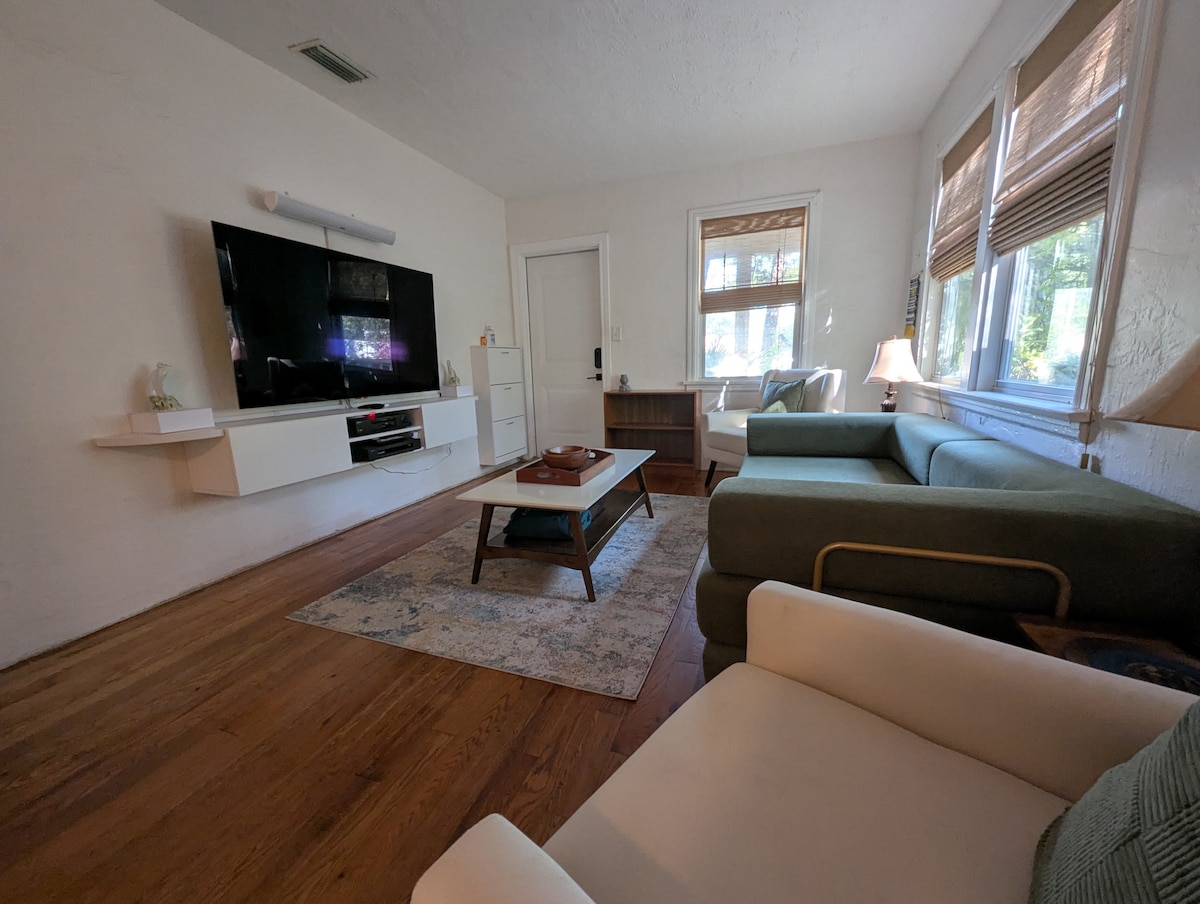 Séjournez au cœur de Gainesville, à quelques minutes de l'Université de Floride, de la vie nocturne du centre-ville, des meilleurs restaurants et de l'aéroport. Profitez de l'intimité avec une cour entièrement clôturée, un confort moderne et une véritable ambiance locale pour un séjour parfait ! Les animaux de compagnie sont les bienvenus, veuillez ajouter votre animal de compagnie à votre réservation. Frais pour animaux de compagnie = 80 $, animaux de compagnie supplémentaires = 30 $ au total. Une demande de frais supplémentaires pour les animaux de compagnie sera envoyée avant l'arrivée, le cas échéant.
