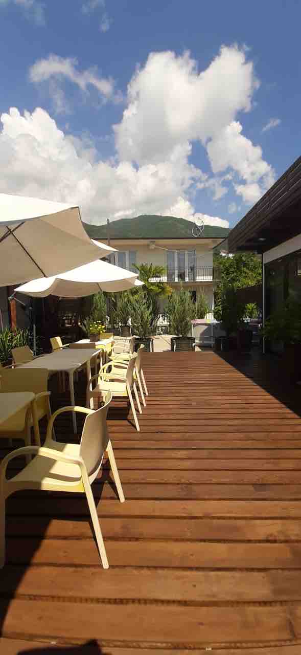 L'hôtel est situé dans la réserve naturelle de Ritsinsky, près des chutes Male Tears, le long de la rivière Bzyb. Nature pittoresque, gorge de beauté incroyable, air de guérison de montagne, beaucoup de lacs, cascades et autres attractions, unis dans cet endroit. Chalets confortables de deux étages, conçus dans un style alpin, il donne une impression de détente du repos et du confort européens. Sur le terrain de l'hôtel Sauna.
