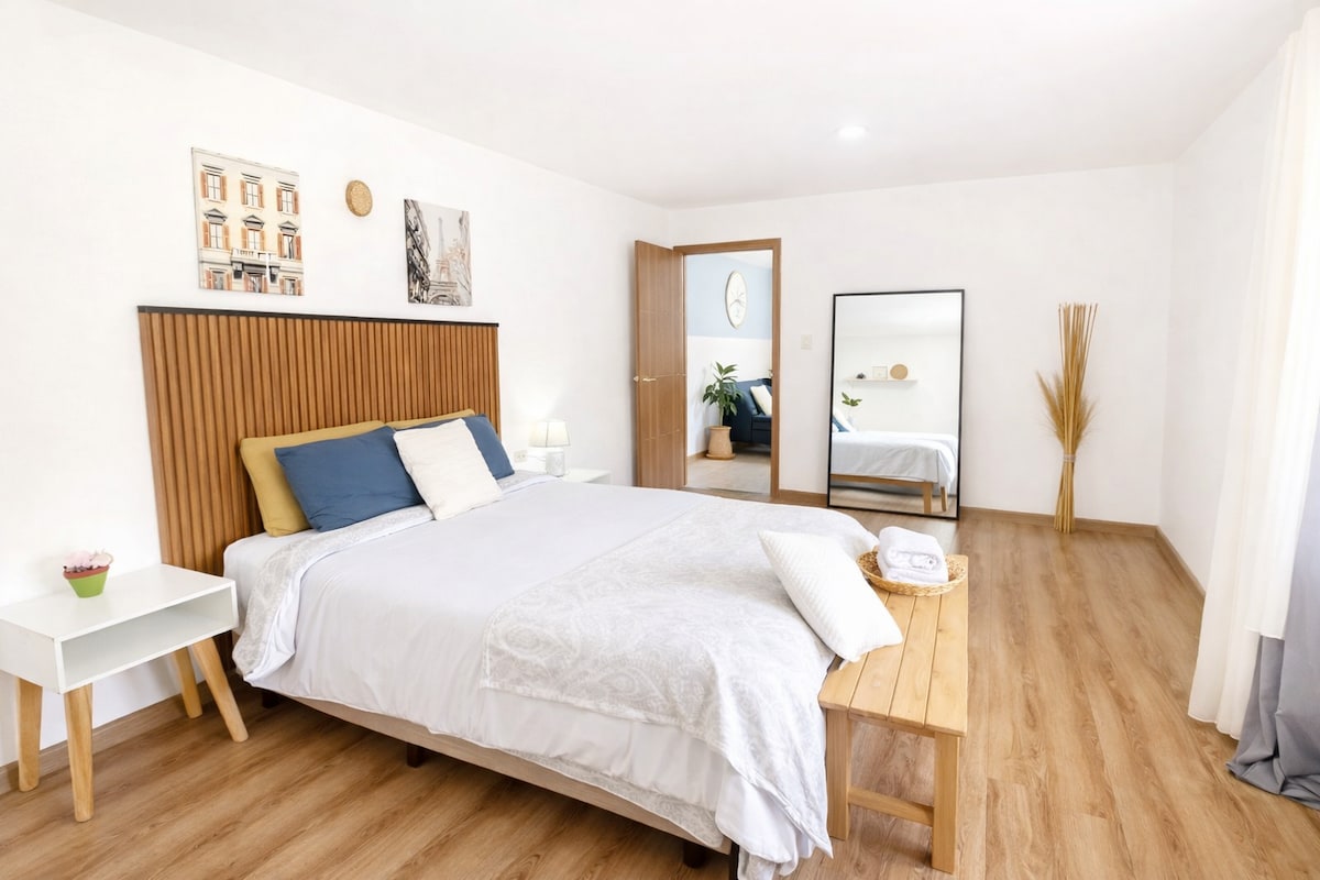 Votre séjour parfait commence ici. Vivez la meilleure expérience dans notre suite moderne et lumineuse avec patio privé, Wi-Fi ultra rapide et parking couvert entièrement gratuit. Sans gradins, avec un design élégant, une intimité totale et des finitions premium. À quelques pas de tout ce qui est important : centre historique, cliniques, parcs, université et centres commerciaux. Idéal pour les voyageurs d'affaires, les escapades en couple ou les séjours prolongés. Confort, emplacement et valeur inégalée en un seul endroit. Réservez maintenant !