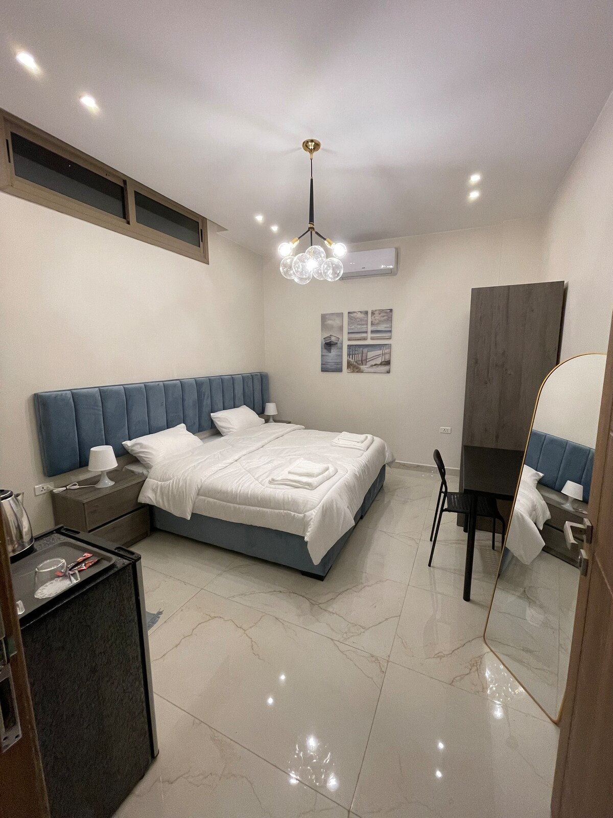 Bienvenue dans notre spacieux appartement Airbnb de 5 chambres niché au cœur animé de Madaba ! Chacune des cinq chambres dispose de son propre coin salon confortable et d'une salle de bain privée, assurant le plus grand confort et l'intimité de nos clients. Notre appartement offre suffisamment d'espace pour se détendre après une journée d'exploration des rues animées de Madaba. Situé dans un quartier vivant du centre de Madaba, les voyageurs se retrouveront entourés de monuments et d'églises antiques.