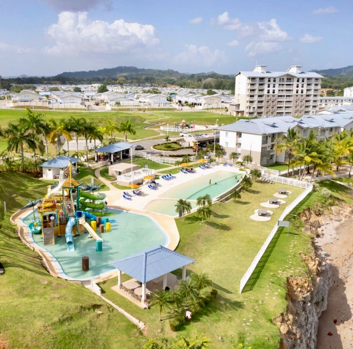 Parc aquatique, vue sur l'océan et repos