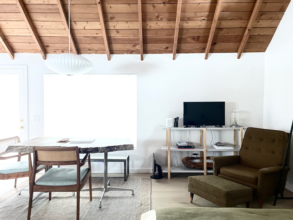 Évadez-vous dans les montagnes dans cette cabane élégante et récemment rénovée pour 4 personnes, conçue par un architecte en gardant votre confort à l'esprit. Profitez de l'air frais de votre spa privé. À l'intérieur : Une chambre : avec un lit queen size confortable. Espace de vie : détendez-vous sur un canapé-lit moelleux, parfait pour deux personnes. EXTERIEURS : Jacuzzi privé : imprégnez-vous de la chaleur et profitez du paysage de montagne. Emplacement : Idéalement situé près du lac Big Bear et à proximité des pistes de ski via un service de bus direct.