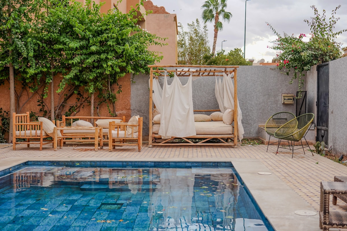 Villa paisible à Marrakech avec accès à un jardin verdoyant et une piscine ensoleillée. Idéale pour les couples, voyageurs seuls ou amis, offrant un espace privé et relaxant. Ambiance familiale et respectueuse. Wi-Fi gratuit, propreté impeccable et accueil chaleureux. À quelques minutes des principales attractions, parfait pour se détendre après une journée de découvertes. Vous vous sentirez comme chez vous !