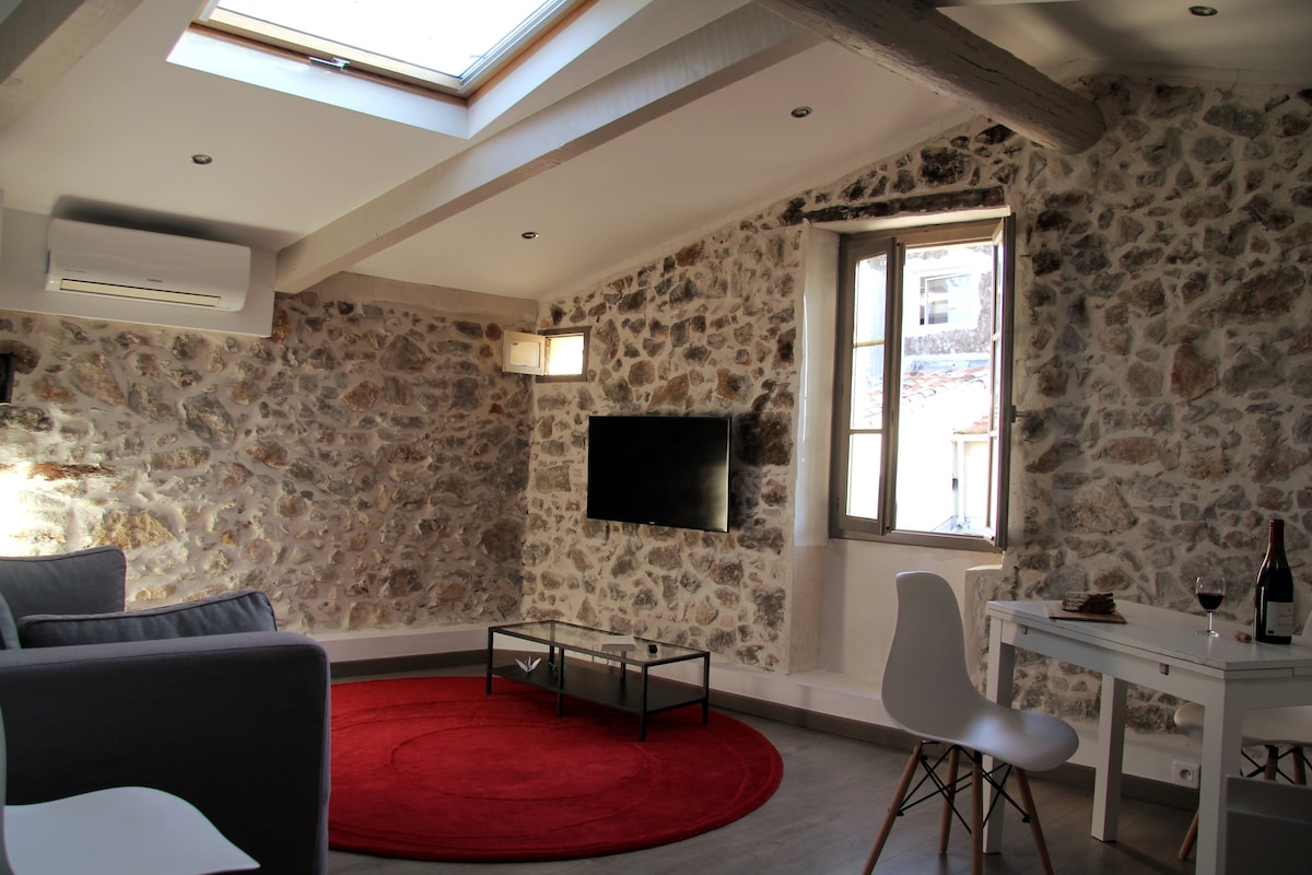 Charming 2BR/2WR apartment nestled in Old Town Antibes’ pedestrian area. Sunlit living room and loggia face the lively town square, while two peaceful bedrooms open to a large terrace overlooking a quiet inner garden. Surrounded by quaint shops, cafés, Marché Provençal, Picasso Museum, beaches, and transport. Well-appointed kitchen. Sofa bed prepared only for extra guests (fee applies). Personalized check-in 3–8pm. We welcome you in person. Underground parking in the building.