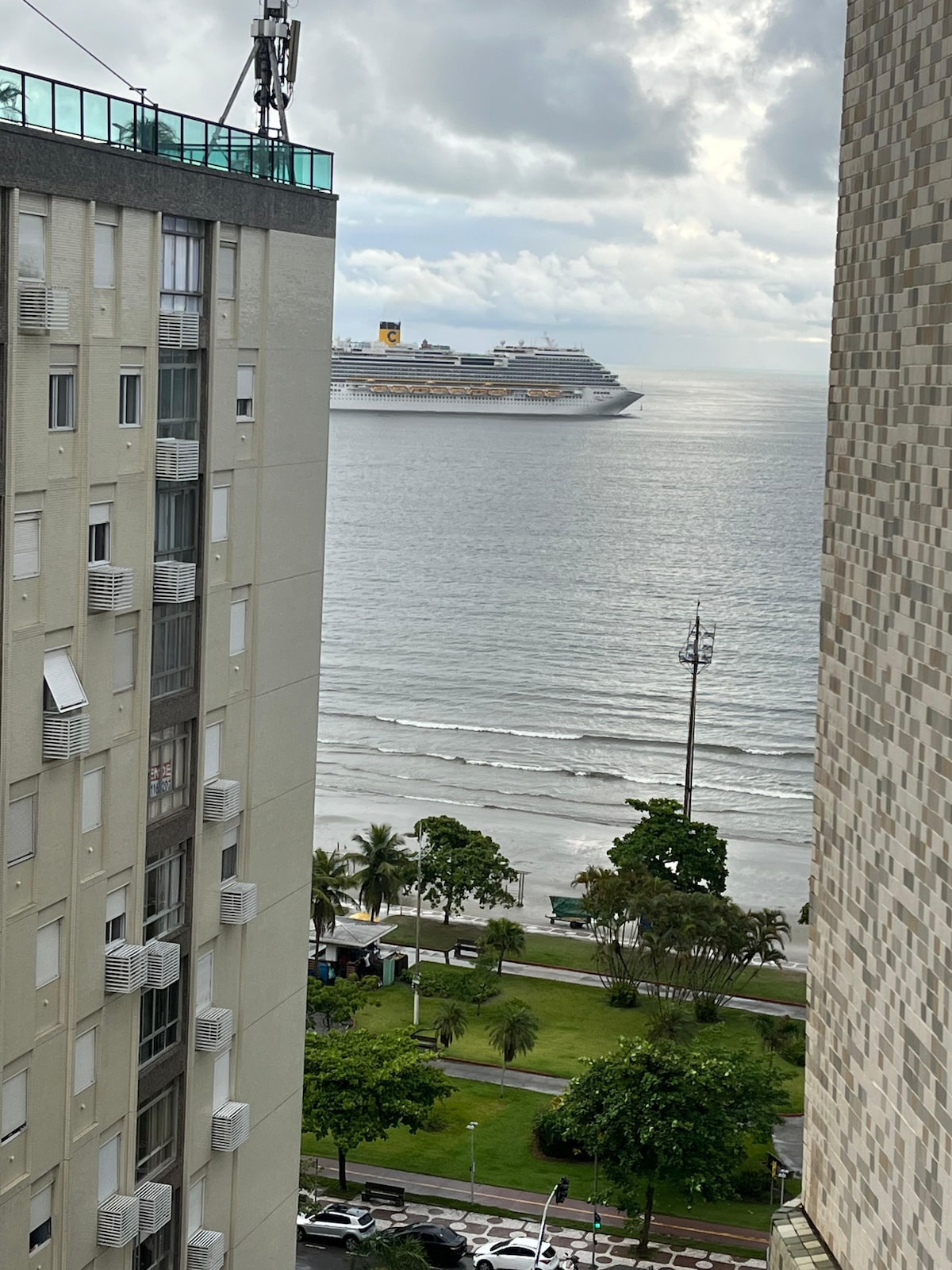 Appartement chaleureux et fonctionnel avec vue directe sur toute la plage de Santos au 14ème étage. Situé à Aparecida, partie nobles de Santos, près de l'aquarium, du ferry, des magasins, des pharmacies, des supermarchés, des restaurants, des snacks bars, des kiosques sur la plage. Idéal pour passer des vacances et profiter de la plage et se détendre. Si vous ne conduisez pas, le bus qui arrive de São Paulo s'arrête à 50 mètres de l'immeuble. La copropriété est ouverte 24h sur 24. En résumé, amusez-vous et revenez détendu.