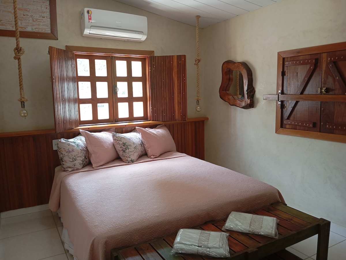 VENEZ VOUS LAISSEZ ENCHANTER PAR L'ARCHITECTURE ET LA NATURE IL Y A 4 CHALETS, AVEC CLIMATISATION ET TV DANS LES SUITES PRINCIPALES ET LINGE DE LIT/SALLE DE BAIN CHAMBRE PRINCIPALE/LIT QUEEN SIZE; ANTI-CHAMBRE AVEC LIT SUPPLEMENTAIRE SALLE DE JEUX AVEC BILLARD, TOTO, BOUTON DE FOOTBALL, PING-PONG; SALLE TV 75 ', LIT ÉLASTIQUE CUISINE ÉQUIPÉE, SAUNA (1H/JOUR) AVEC SPA (À COMBINER AVEC L'EMPLOYÉE JUSQU'À 15H) SERVICE DE CUISINIÈRE DÉJÀ COMPRIS DANS LE TARIF QUOTIDIEN - DE 08H00 À 16H00 L'HÔTESSE A UNE MAISON PRINCIPALE SUR LE TERRAIN QUI NE SERA PAS DISPONIBLE À LA LOCATION