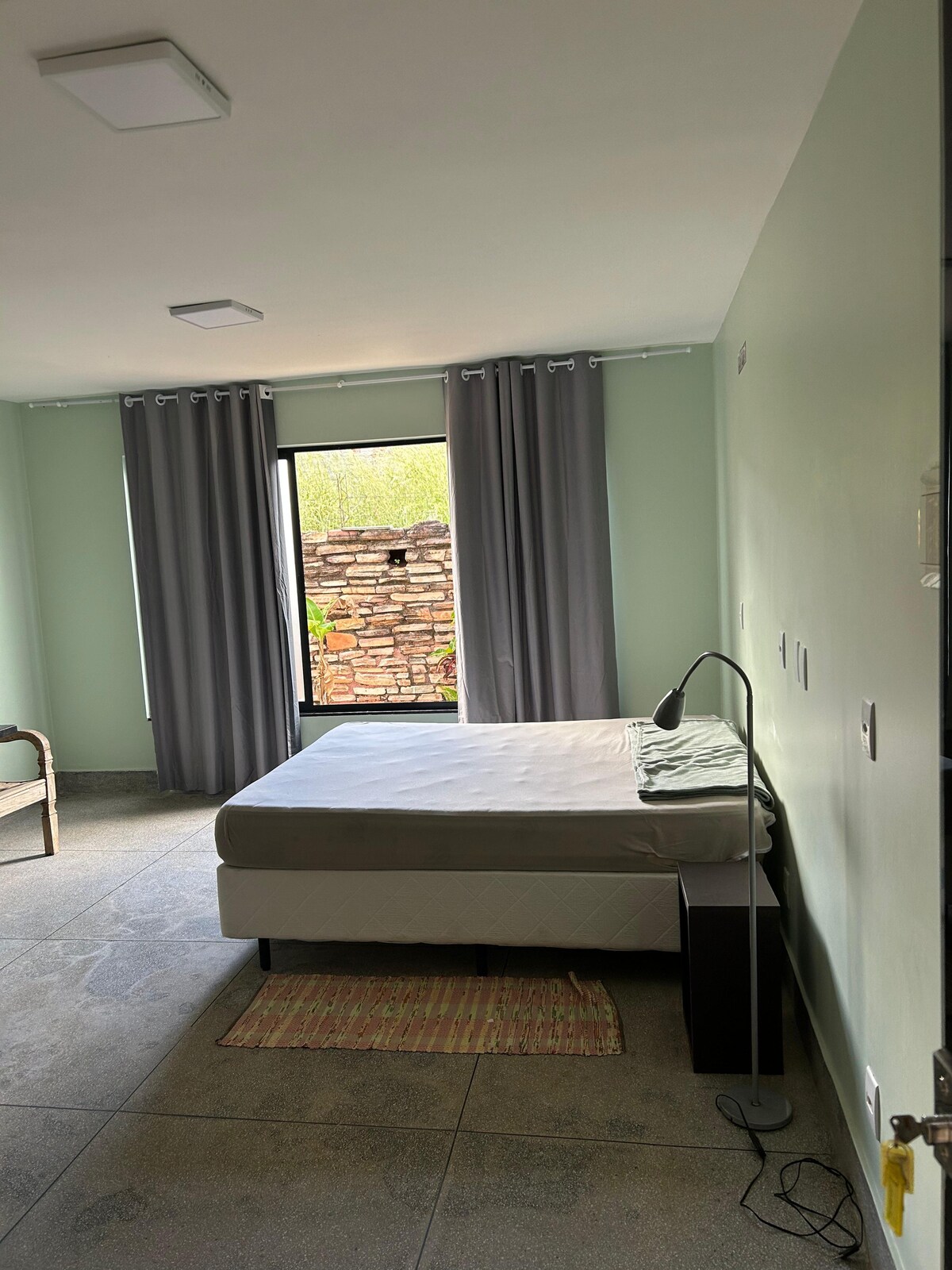 Appartements en pleine nature ! L'ambiance belle et cosy pour passer le week-end, la saison ou le mois. Le jardin Flats Carmel dispose de grands espaces verts, d'arbres fruitiers, d'un jardin fleuri, d'une forêt avec un petit sentier, d'une piscine avec un paysage luxuriant, d'une cuisine partagée, d'un barbecue, d'un parking. Idéal local pour les tarifs journaliers ou pour votre appartement mensuel à Pirenópolis.
