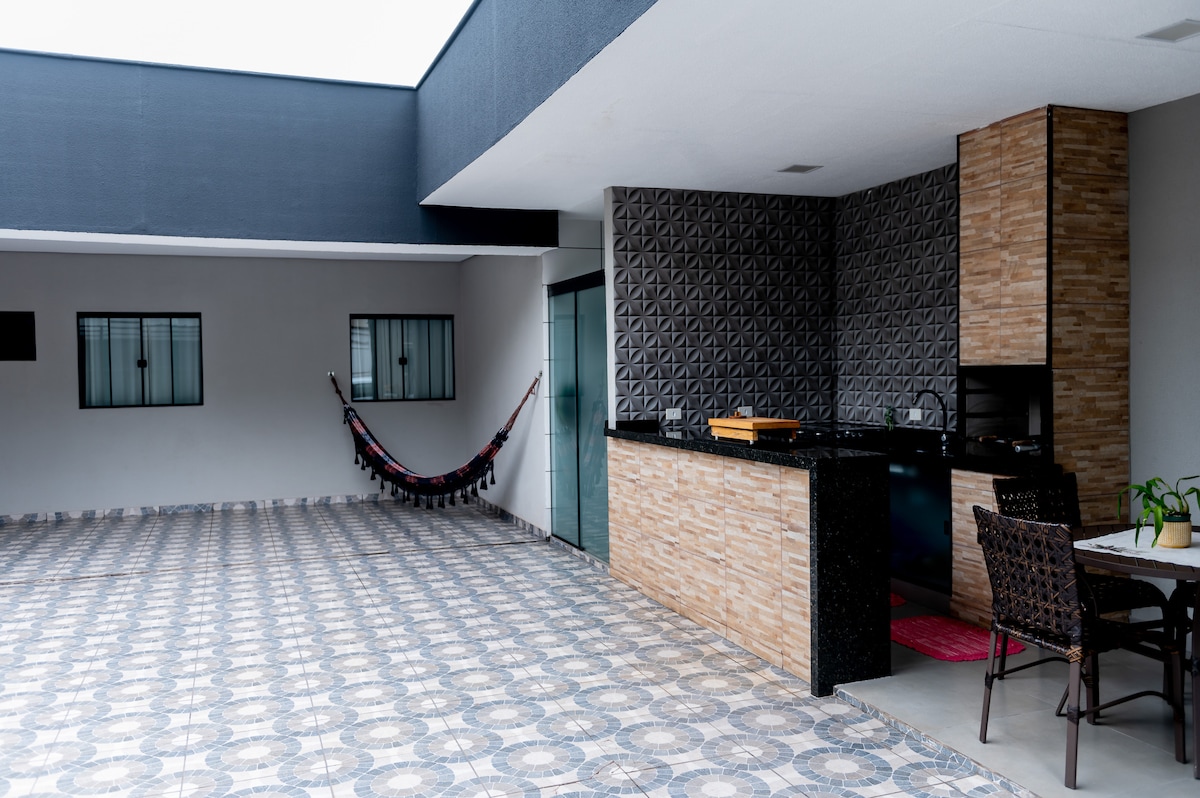 Il peut accueillir jusqu'à 10 personnes avec 3 lits doubles et 2 poutres simples. Toutes les chambres disposent de la climatisation. Il dispose d'une buanderie, d'un barbecue et d'un garage pouvant accueillir jusqu'à 3 voitures. Situé à 1,4 km de l'hôpital Honpar, à 1,3 km du collège Anhanguera et à 2,6 km de la salle d'assemblée des Témoins de Jéhovah. À 500 m des supermarchés, des pharmacies et de la crème glacée. Idéal pour ceux qui recherchent le confort et la commodité !