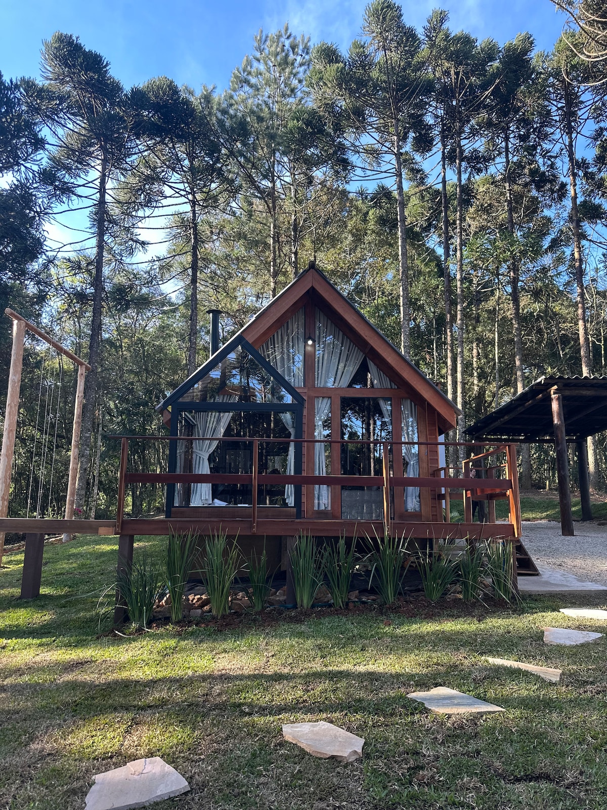 Refúgio Encantador na Natureza - Conforto e Tranquilidade Descubra o equilíbrio perfeito entre conforto e natureza em nossa encantadora cabana Ayra. Localizada no coração de uma paisagem exuberante, esta propriedade oferece uma experiência única para aqueles que buscam relaxar e se reconectar com a natureza. Com total privacidade, sem ter que dividir o terreno e nem mesmo se preocupar com vizinhos próximos.