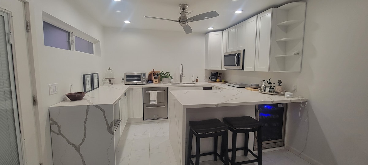 Urban, modern guest house at the base of Camelback Mountain! Stay in the heart of Arcadia within walking distance to great hiking, amazing restaurants and shopping. The studio apartment has a private entrance to an unshared outdoor space with views to camelback mountain. Relax in this newly renovated, cozy, modern space featuring a full-sized kitchen, large bathroom, walk-in-closet, and washer and dryer. We hope you enjoy your stay!