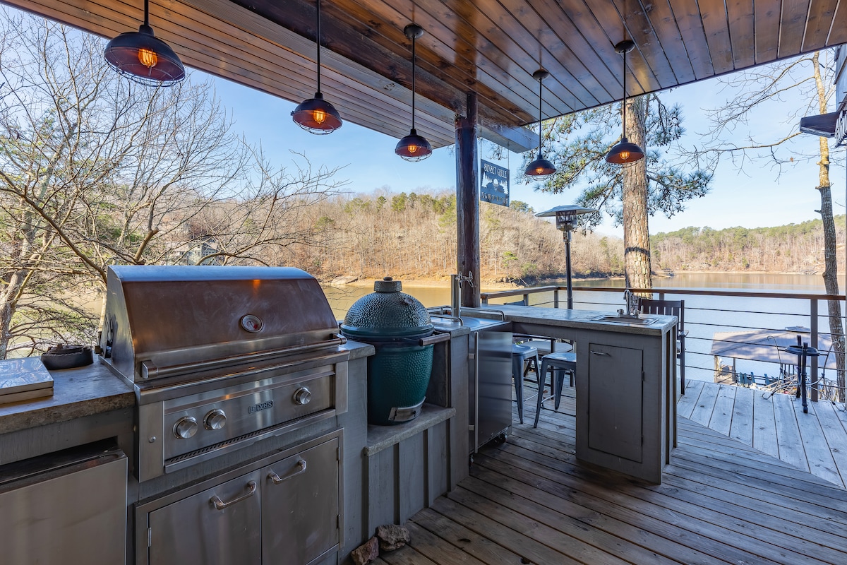 Bienvenue à Emerald Bay - une maison de luxe au bord d'un lac nommée pour ses vues imprenables sur la baie et ses eaux claires toute l'année. Cette maison personnalisée achevée en 2022 est située à l'écart du canal principal dans une baie protégée. Vous trouverez des vues imprenables dans toute la maison et des divertissements en plein air à son meilleur. Profitez de la baignade et des sports nautiques juste à côté du magnifique rivage rocheux ou du quai à double amarrage de 2 étages avec espace de divertissement sur le toit. Le grand foyer et le jacuzzi offrent des divertissements après la tombée de la nuit.