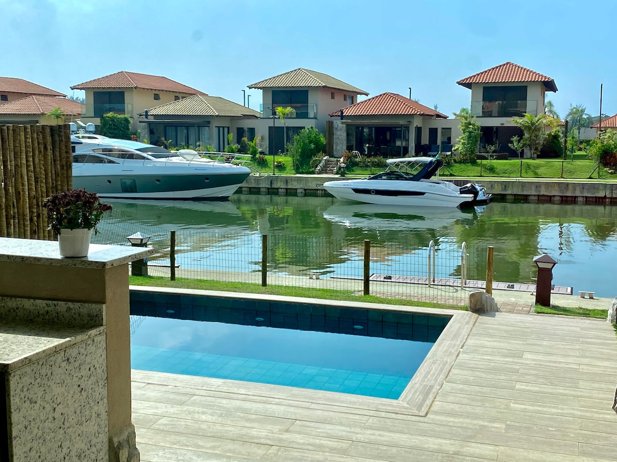 Profitez du paradis à Búzios dans une maison de luxe avec piscine et bateau à moteur à la porte Situé dans l'appartement en résidence fermé Aretê Esta Casa est un projet de développement urbain conçu pour allier confort, sécurité, loisirs et bien-être inégalé. Il dispose de 4 chambres, 4 salles de bains, d'un barbecue, d'une piscine privée, d'un parking pour 4 voitures et d'un espace gurmet ainsi que d'un bateau à moteur avec marin qui peut être loué séparément