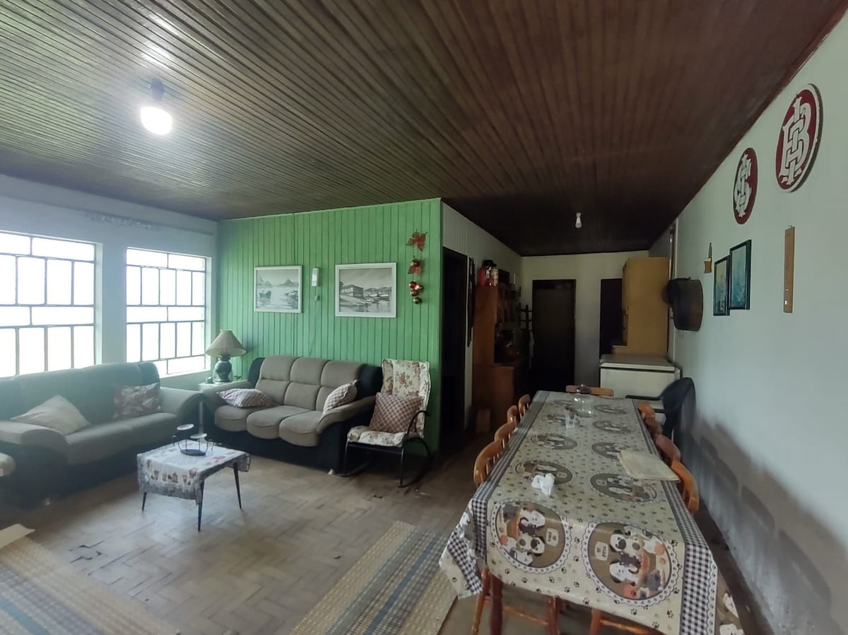 Maison dans une copropriété avec 2 maisons, un endroit calme, bien situé et en hauteur, et qui vous détend naturellement lorsque vous êtes ébloui par la vue large que la maison offre sur la rivière Guaíba, ainsi que sur toute la ville de Porto Alegre ! Et en même temps, il y a beaucoup d'espace vert disponible dans la cour. Tout cela se trouve en plein centre de Guaíba. La maison dispose de 2 chambres avec salle de bains, de la climatisation, de lits queen-size et d'un lit simple. Grand salon, Wi-Fi, balcon avec barbecue. Copa : cuisine complète, buanderie et garage