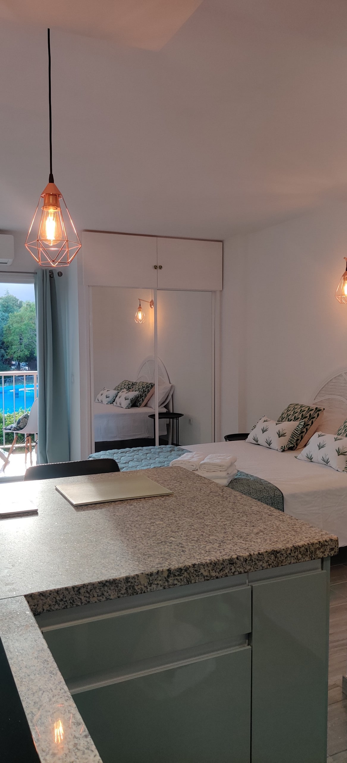 Studio avec terrasse et vue sur la mer en face de la plage. Il dispose de la climatisation, d'une télévision connectée, de Netflix et d'un point de lecture. Le complexe Benalbeach abrite une salle de sport payante, un mini parc aquatique avec toboggans dans les piscines, un supermarché, une salle de jeux et un snack-bar ouvert pendant l'été. Pendant l'hiver, les ouvertures des piscines sont modifiées, mais les jardins sont disponibles toute l'année. - Interdiction de fumer. - Animaux non acceptés.