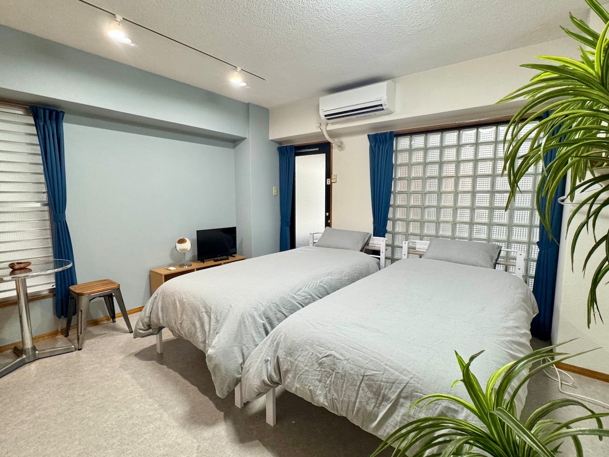 Près de Dotonbori/8 min de la gare/Chambre avec lit double