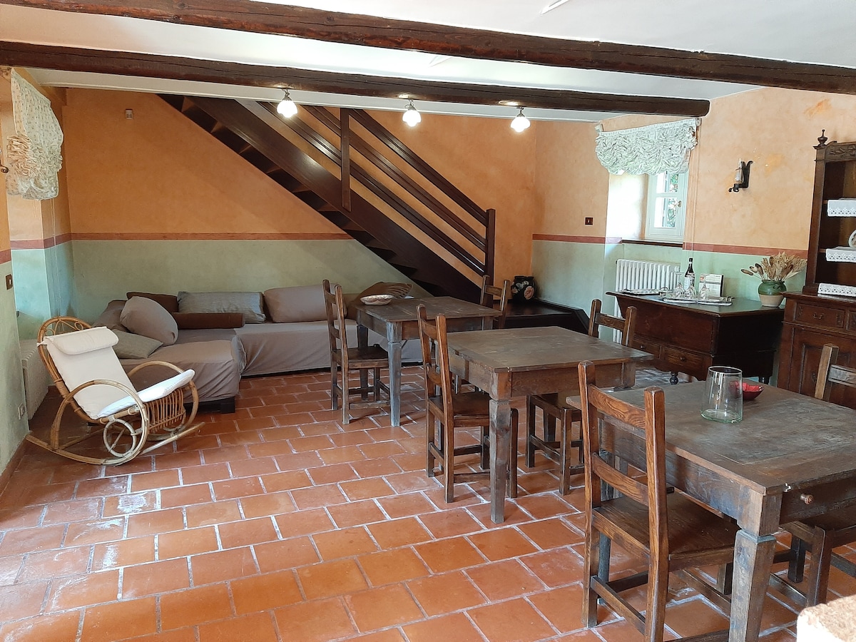 L'appartement (UTILISÉ POUR le B&B) est au rez-de-chaussée d'une maison de campagne située entre les Langhe et le Monferrato ; il se compose de deux chambres, d'un salon, d'un coin petit déjeuner et d'une salle de bain privée. Les chambres donnent sur une grande terrasse, à partir de laquelle vous pouvez accéder au parc qui garantit une agréable fraîcheur les jours les plus chauds. En plus de la nuitée tous les matins, UN COPIEUX PETIT DÉJEUNER riche en produits locaux est servi. IL N'EST PAS PRÉVU L'UTILISATION DE LA CUISINE PAR LE CLIENT.