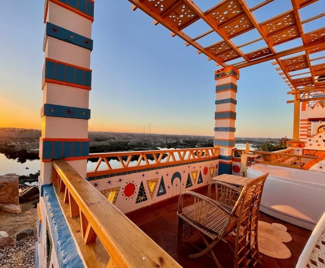 Évadez-vous dans une retraite nubienne authentique sur une île privée , juste en face d'un village nubien vivant. Notre maison d'hôtes reflète le charme des maisons nubiennes traditionnelles, avec des murs en briques de boue, des dômes en briques rouges cintrées et des meubles en bois fabriqués à la main. Profitez d'un séjour serein entouré d'une ferme biologique, d'une plage privée et de lieux de méditation tranquilles surplombant le Nil. Que vous soyez là pour vous détendre, explorer ou échanger avec la culture nubienne, c'est l'oasis parfaite.