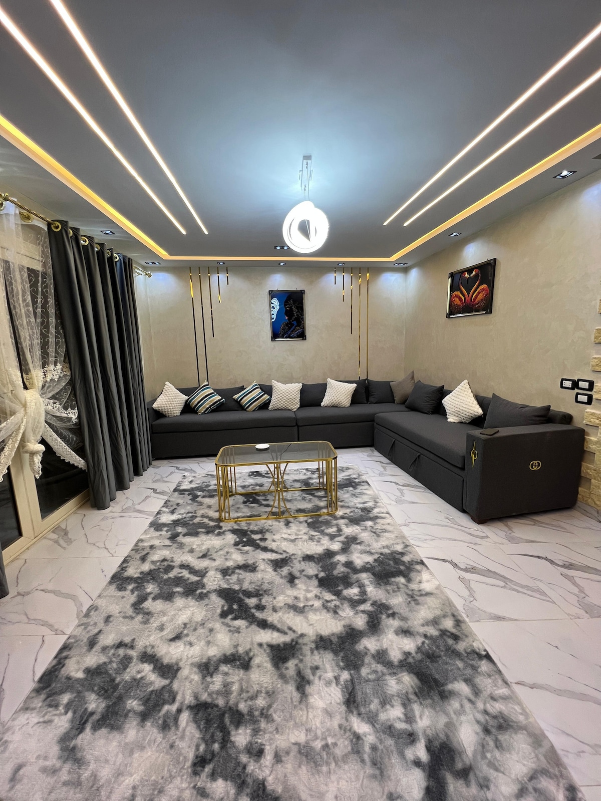 Chalet (3) chambres (2) salles de bains, réception, salle à manger, cuisine complète Le chalet est au premier étage, la distance du chalet à la mer est de (6) minutes à pied, vous pouvez y aller en voiture pour gagner du temps, le chalet dispose de deux chambres et d'une réception, de la climatisation, d'une commande intelligente : grâce au système Alexa, vous pouvez contrôler l'éclairage, la climatisation et les appareils électriques avec des commandes vocales simples. Réglez le mode d'éclairage approprié pour votre soirée en un mot. Vous y trouverez une connexion Wi-Fi gratuite, des appareils électriques, un réfrigérateur de 390 litres, une cuisinière à gaz naturel à 4 feux, un lave-linge super automatique de 8 kilos, une télévision à écran plat de 55 pouces et un radiateur électrique.