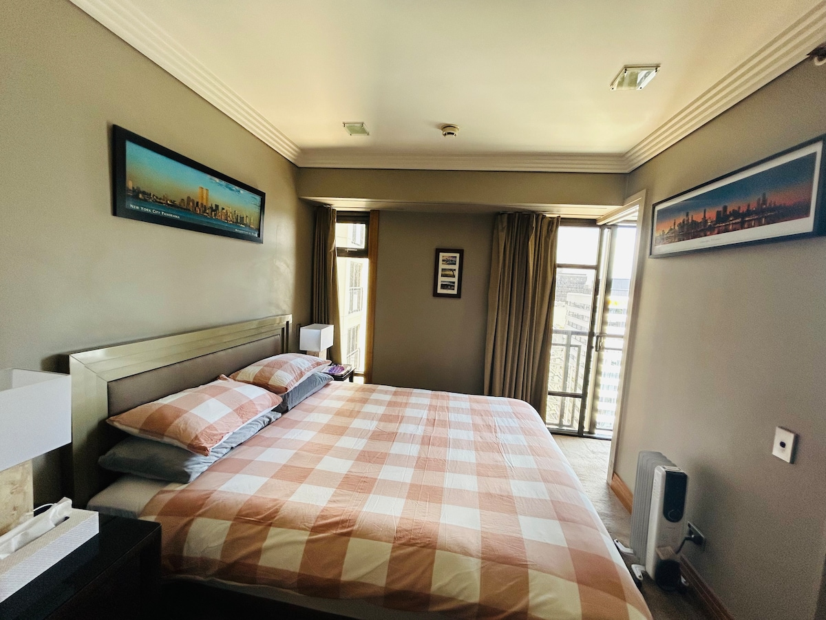 Studio de luxe élégant et relaxant situé au centre. Profitez du séjour avec accès à la salle de sport intérieure et à la piscine extérieure, où vous pourrez profiter d'une vue imprenable sur la SkyTower et le parc. Lit Queen Size super confortable, coin repas et salon ouverts, une porte coulissante à double vitrage du sol au plafond avec un balcon qui gardera la ville animée à l'extérieur. Cuisine entièrement équipée et buanderie, WiFi illimité, télévision connectée, climatisation. À quelques pas de Skytower, du ferry, de la gare, de l'université, des bars et des restaurants.