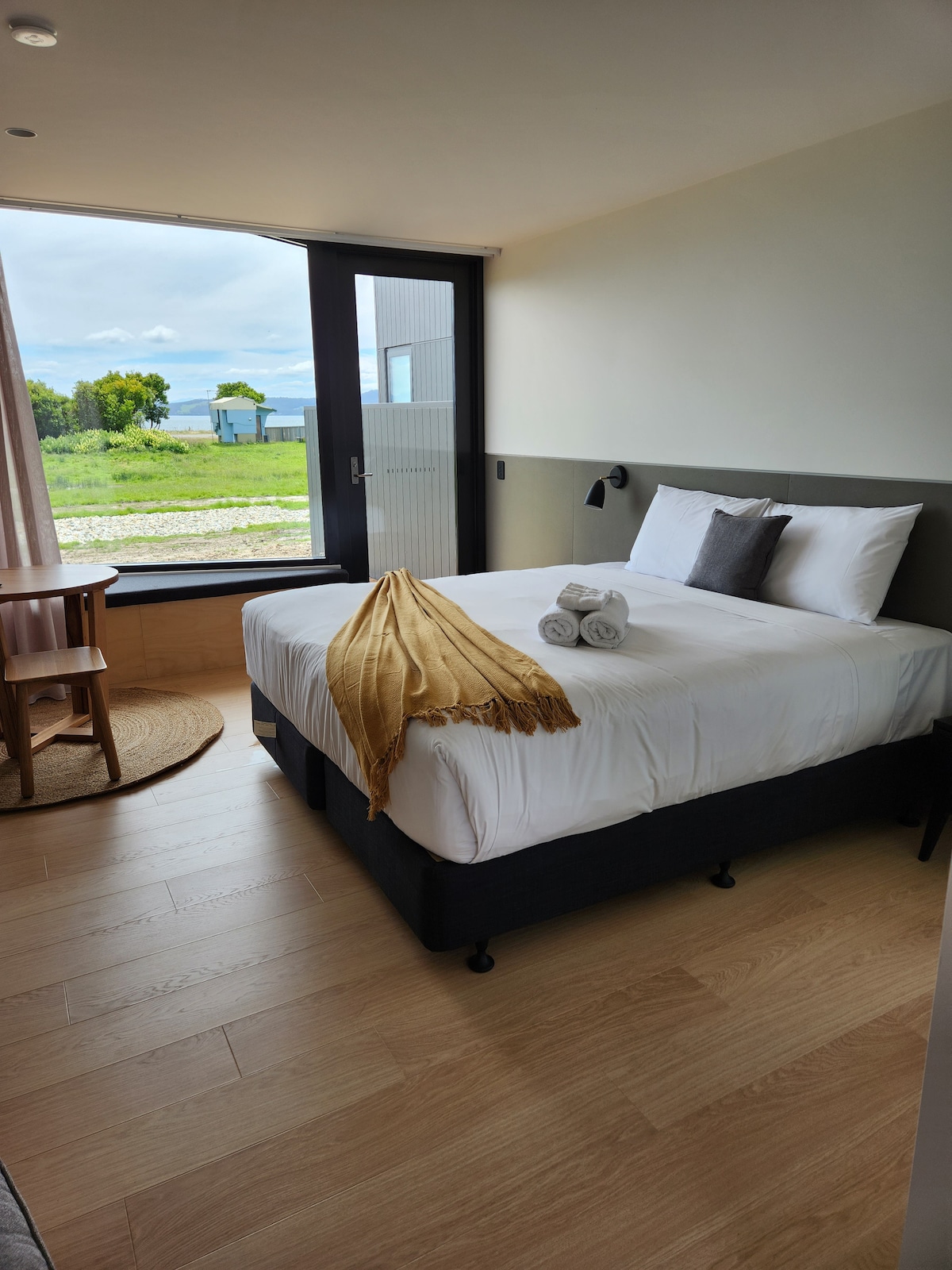Vous apprécierez nos toutes nouvelles et élégantes chambres King Lodge. Chaque chambre offre une vue imprenable sur le canal d'Entrecasteaux, l'île Satellite et les montagnes du sud de la Tasmanie depuis votre terrasse privée ou le confort de votre chambre sur le siège de la fenêtre. Situés sur une colline douce derrière l'hôtel Bruny très apprécié, ces gîtes au design architectural sont pratiques mais privés, fonctionnels et spacieux et offrent maintenant une option pour 1 lit king size ou des lits jumeaux simples.