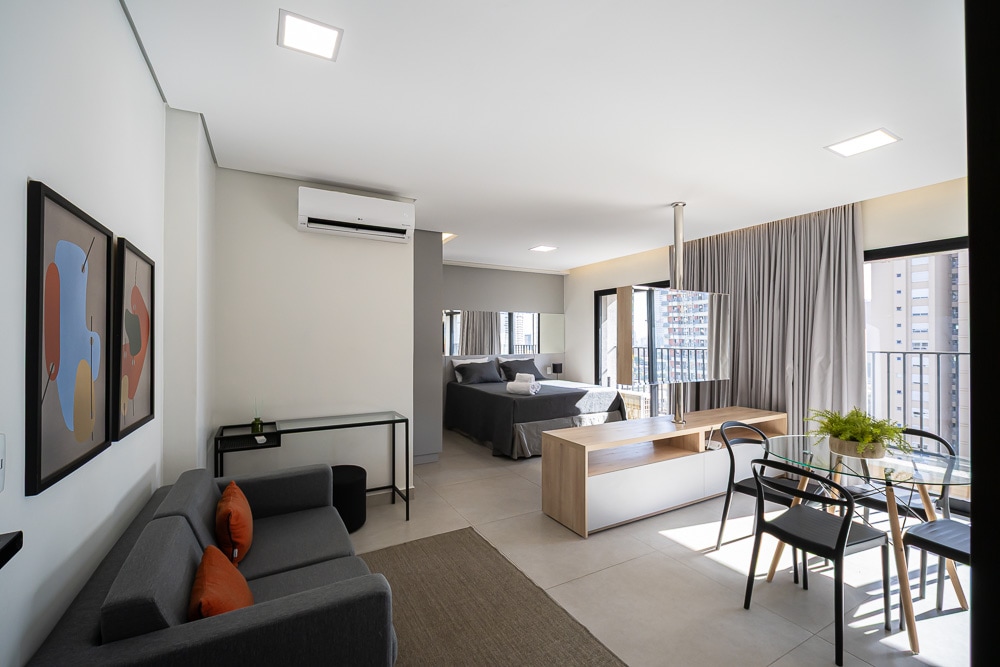 Un espace conçu pour ceux qui apprécient le confort, le style et la sophistication ! Situé à un étage élevé et offrant une vue imprenable sur la ville, cet espace allie design moderne, intégration intelligente et praticité. Situé dans un quartier privilégié, ce studio est idéal pour les couples, les professionnels et les voyageurs à la recherche d'une expérience supérieure à Goiânia, que ce soit pour les loisirs ou les affaires.