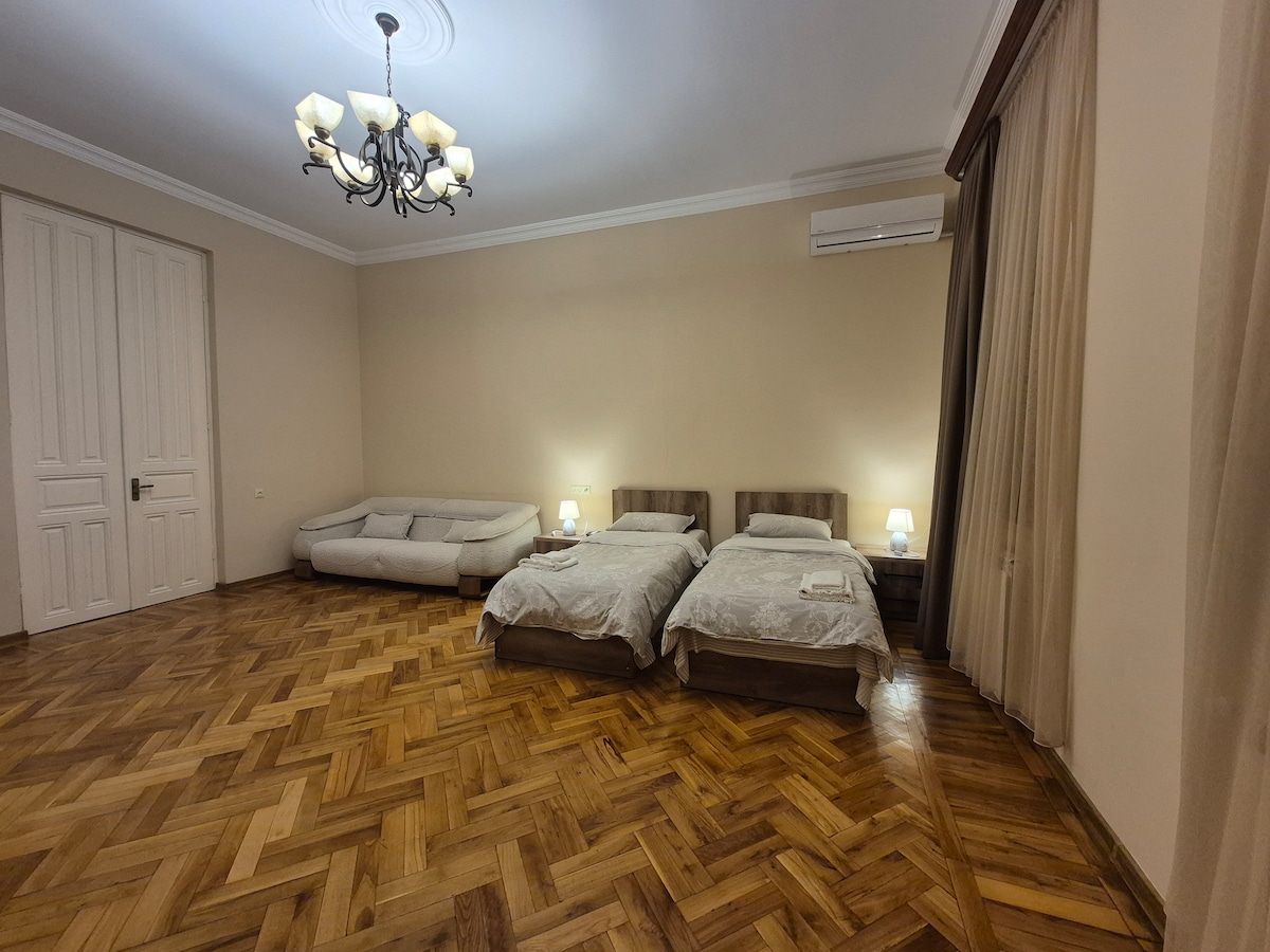 Appartement neuf dans un immeuble de deux étages, isolé et avec une entrée indépendante, situé dans le centre historique de la ville. Un hébergement récemment rénové est à la disposition des voyageurs. Les principales attractions, restaurants, cafés et boutiques de la ville sont accessibles à pied. Les propriétaires parlent anglais, russe et géorgien.