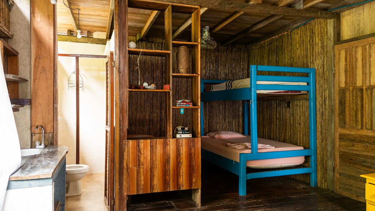 Tu familia estará cerca de todo cuando te quedes en este alojamiento céntrico. Cerca a la playa y al pueblo, cocina compartida muy bien equipada, agua potable. Habitación espaciosa, cuenta con cama doble, un camarote, baño privado, ventilador y mosquiteros. hubicada en el segundo piso de la cabña con espacios para descansar y hermosa vista de las montañas y la selva.