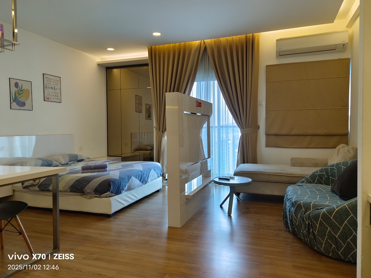 Un studio confortable avec balcon, une salle de sport bien équipée et une vue imprenable sur l'autoroute vous permettront de passer un séjour fantastique, que vous voyagiez en couple ou en solo. Il est situé au centre et facilement accessible depuis la station de métro Bandar Tun Hussein Onn (à distance de marche), ce qui vous place à proximité des principaux points chauds de la ville et d'un large éventail de commodités. La co-propriété est attachée à des lots commerciaux (KK SpeedMart, restaurant, etc.)