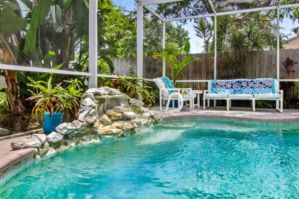 Retraite privée avec piscine chauffée et spa à quelques pas de la plage