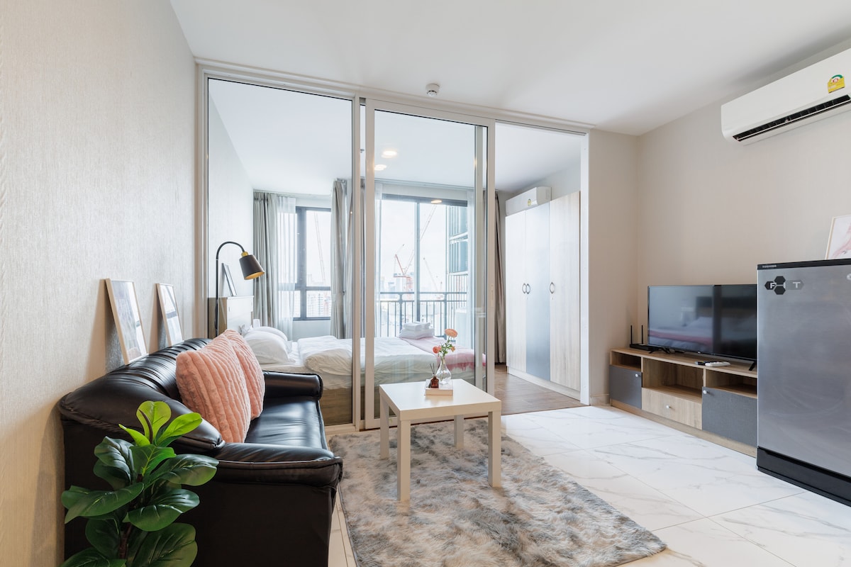 [Chambre idéale pour le télétravail] Wi-Fi haut débit + bureau | Près du métro Rama 9 | Tout ce dont vous avez besoin pour vivre !