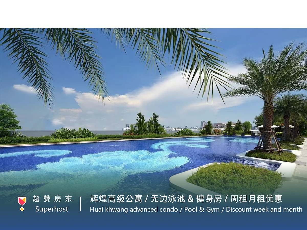Appartement confortable Huai khwang au centre de Bangkok/complet/piscine/sauna/salle de sport/9F