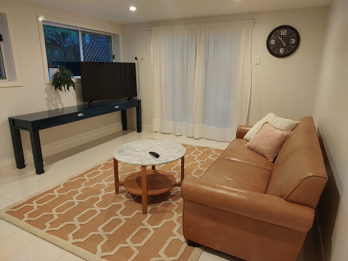 Détendez-vous au cœur d'Ashgrove. Avec accès au niveau inférieur de notre maison, y compris : utilisation de la cuisine, du salon et de la salle de bain. Les 2 chambres disposent toutes deux de la climatisation, de ventilateurs et de beaucoup d'espace de rangement. Grande télévision à écran plat avec services de streaming et bon wifi. À quelques pas de la gare routière qui vous mènera en ville (à 4 km) ou au centre d'Ashgrove (1 km). NB : Il n'y a pas de parking sur place, mais un parking disponible à moins d'une minute à pied.